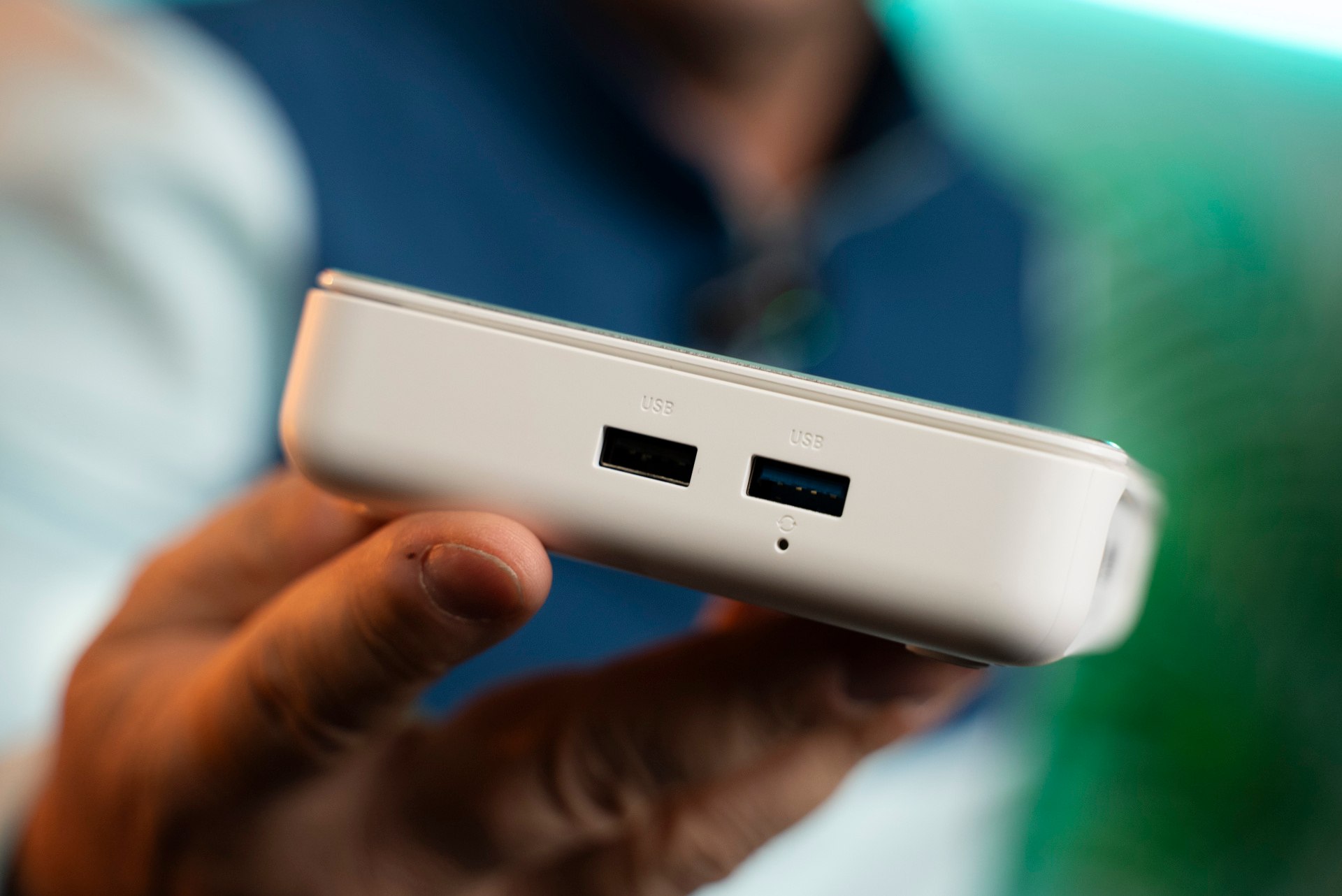 Na boku je USB 3.0 a USB 2.0 port napr. na pripojenie USB pamäťových kľúčov. Na spodnej strane zariadenia je ešte jeden port USB Type C, ktorý je určený špeciálne na pripojenie audio príslušenstva Homatics, ktoré bude uvedené do predaja v roku 2025.