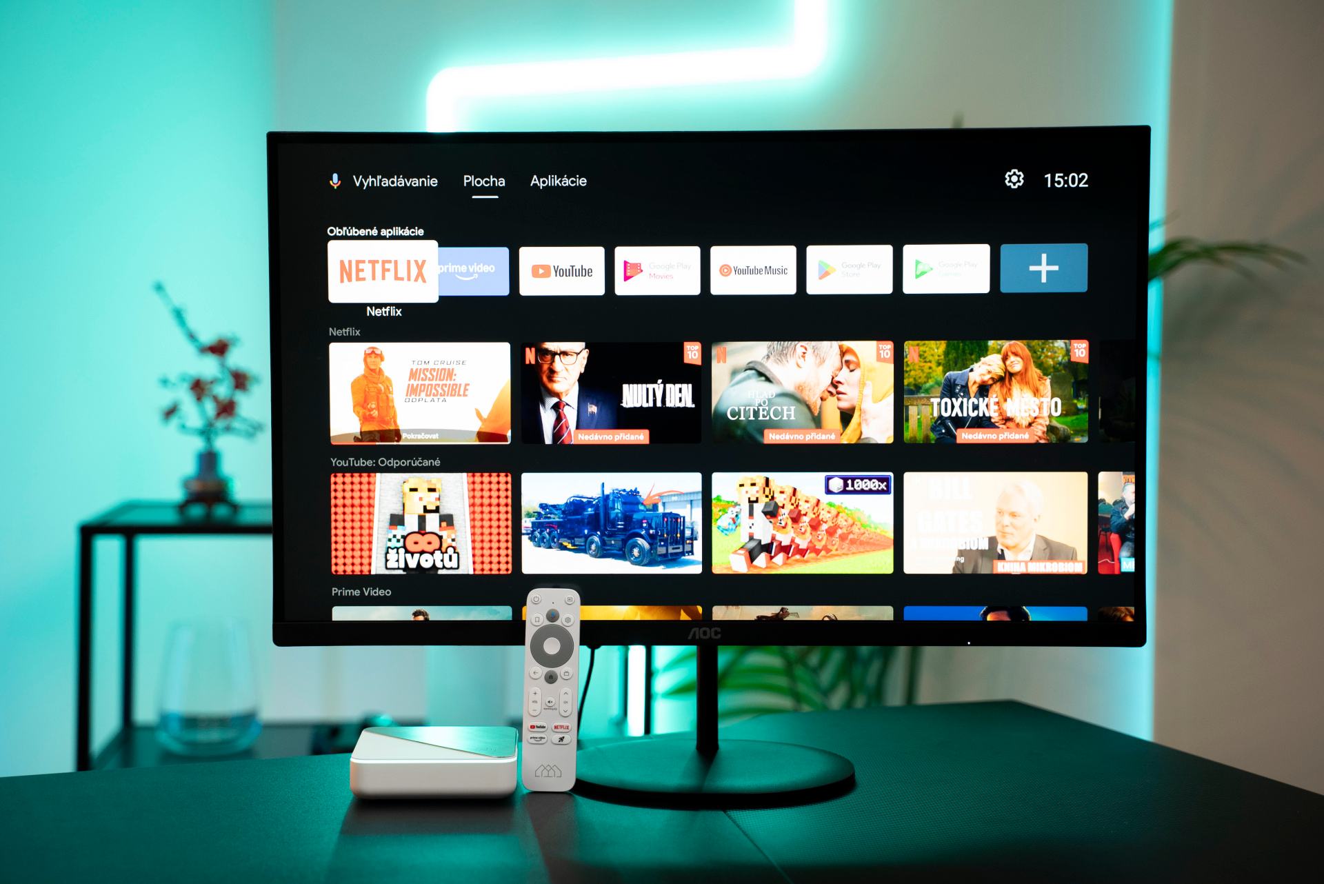 Keďže je tu operačný systém Android TV, spolu s prístrojom dostávate aj hlasového asistenta Google, aplikáciu YouTube a zabudovaný je aj chromecast. Samozrejme, máte obchod s aplikáciami Google Play a preto si môžete nainštalovať aplikácie ako Netflix, Prime Video, Antik TV, Magio TV, Skylink, HBO MAX, Disney+, Spotify, KODI a podobne.