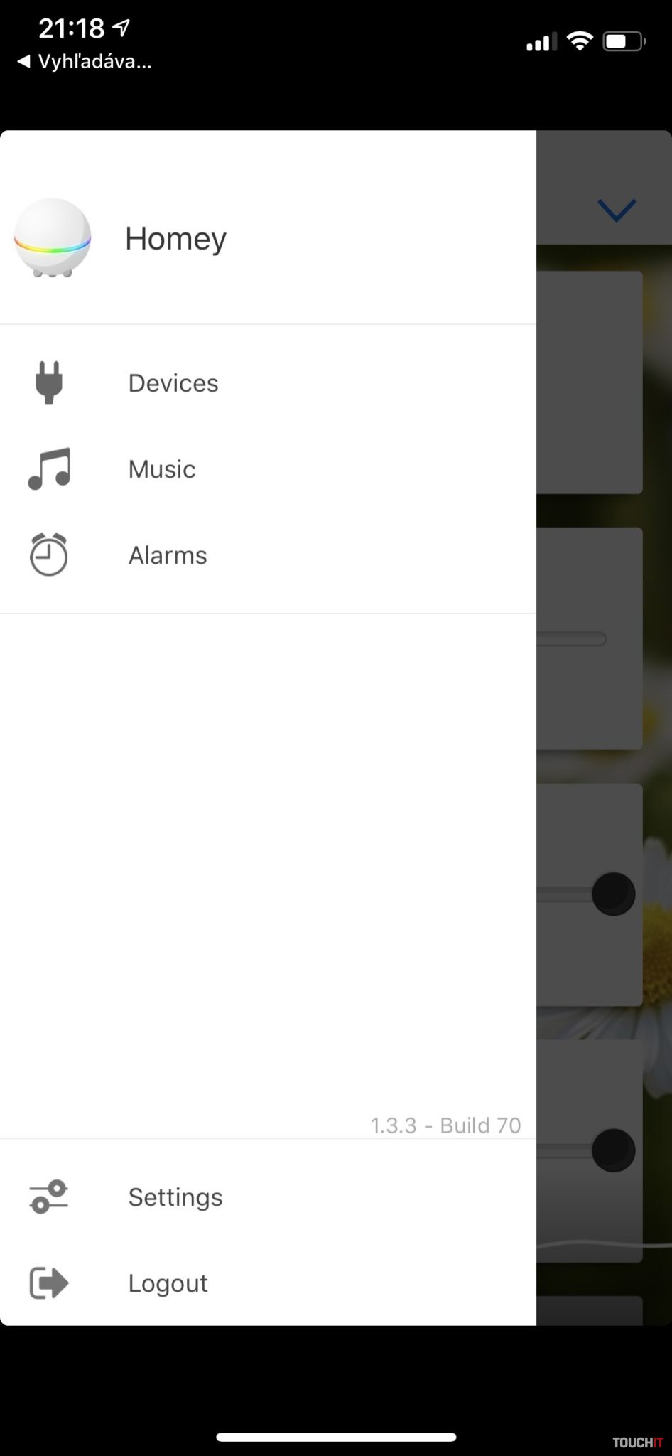 Ešte pár slov k aplikácii, ktorá ponúka iba základnú funkcionalitu, bez možnosti podrobnejšieho nastavenia systému. Vidíte v nej všetky pridané zariadenia, ktoré môžete ovládať, ale nové zariadenia pomocou aplikácie pridávať neviete. Taktiež nie je možné cez aplikáciu vytvárať nové scény, čo by bolo veľmi zaujímavé. Čo však urobiť viete je to, že cez aplikáciu, resp. rôzne pluginy môžete spustiť prehrávanie hudby priamo cez Homey. Tento proces však môže byť občas komplikovaný a nie vždy nám chcelo Homey hudbu prehrať. V zásade to ale nevadí, nakoľko výstupný zvuk nie je ničím zaujímavý. Lepšie je spustiť scénu, ktorá aktivuje váš domáci audio systém. V aplikácii nájdete aj alarmy (budík), ktoré si môžete nastaviť podľa potreby. Homey vás v nastavenom čase zobudí melódiou a hláškou, že je čas vstávať, prípadne spustí vami vytvorenú scénu – ráno. V nastaveniach aplikácie je možné deaktivovať mikrofóny zariadenia alebo nastaviť detekciu prítomnosti v domácnosti, na základe čoho môžu byť spustené ďalšie procesy v scénach. Táto aplikácia je zatiaľ iba nutný základ na jednoduché ovládanie, zisťovanie udalostí v domácnosti a prijímanie notifikácií.