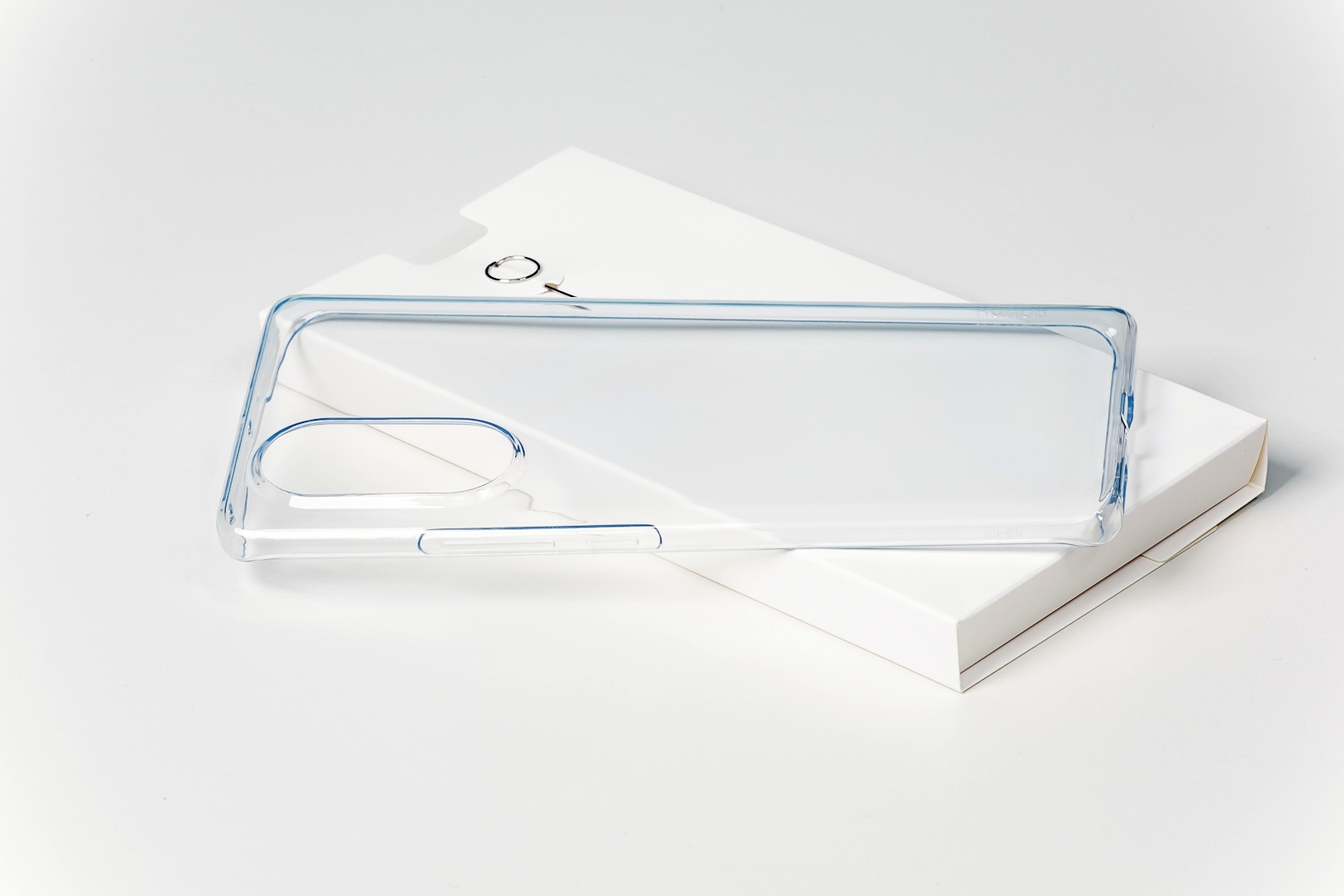 V samotnej krabici sa na nachádza telefón zabalený v ochrannej fólii. Pod ním je obal z tvrdého papiera, v ktorom je špendlík na otváranie šachty pre SIM kartu a vo vnútri je plastový ochranný obal na telefón. Určite ho použite, nemení dizajn telefónu a ochráni zadnú časť pred škrabancami. Zadná časť telefónu je po jeho nasadení rovná a nešmýka sa.