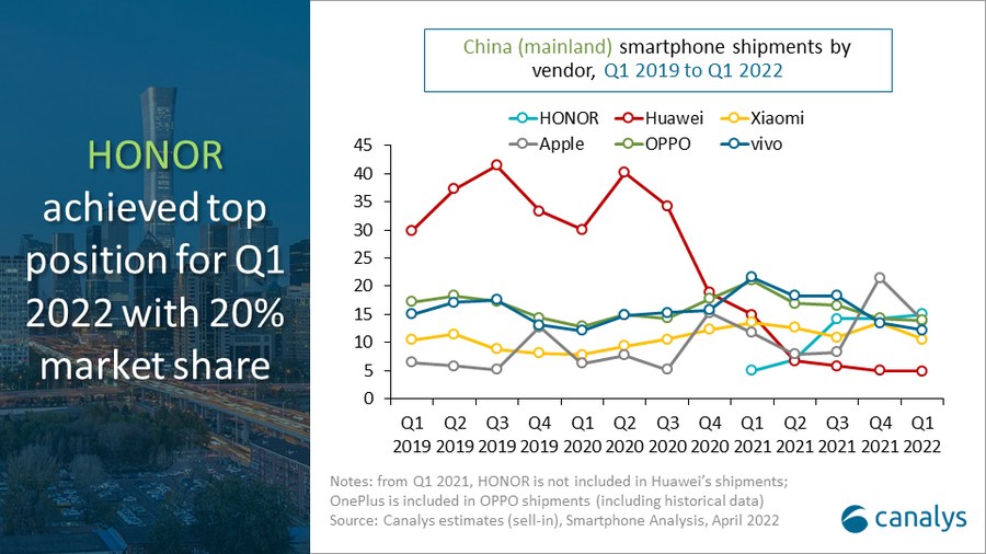 Spoločnosť Honor sa teraz stala “kvartálnou” trhovou jednotkou prvýkrát vo svojej histórii. Prvé miesto s 15 miliónmi predaných zariadení znamená pre značku obrovský skokový nárast 205 %. Medziročne spoločnosť zaznamenala 166,8 %, pričom kvartálne 15,5 %.