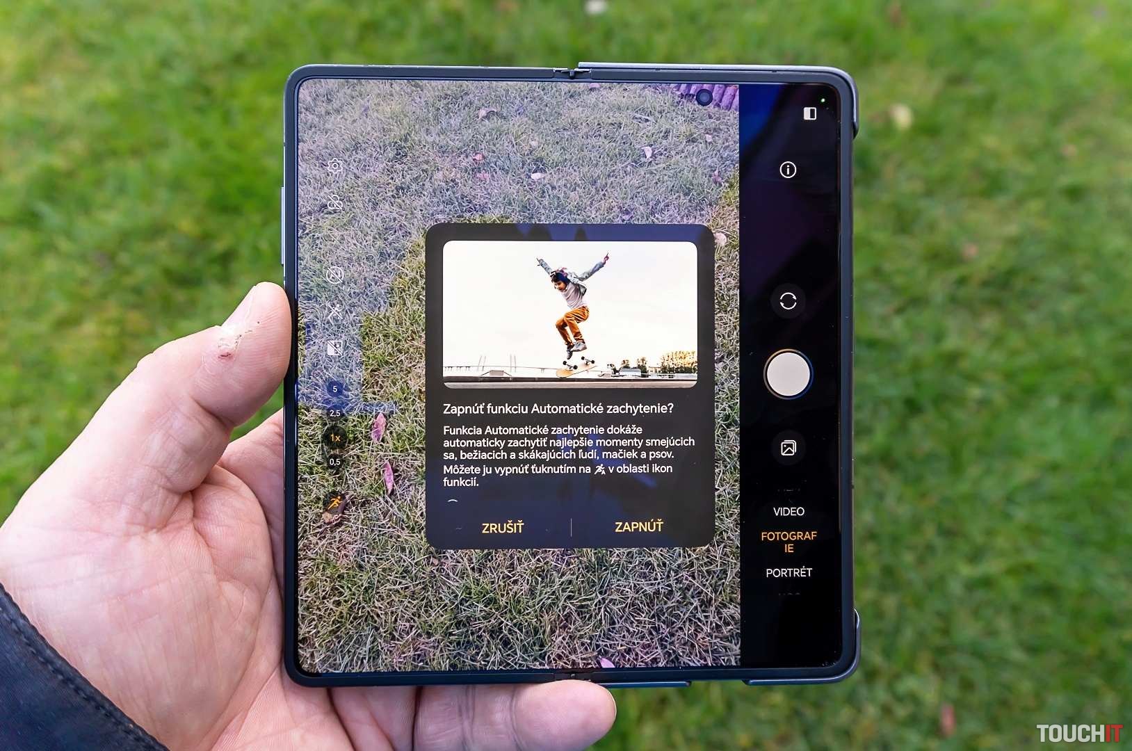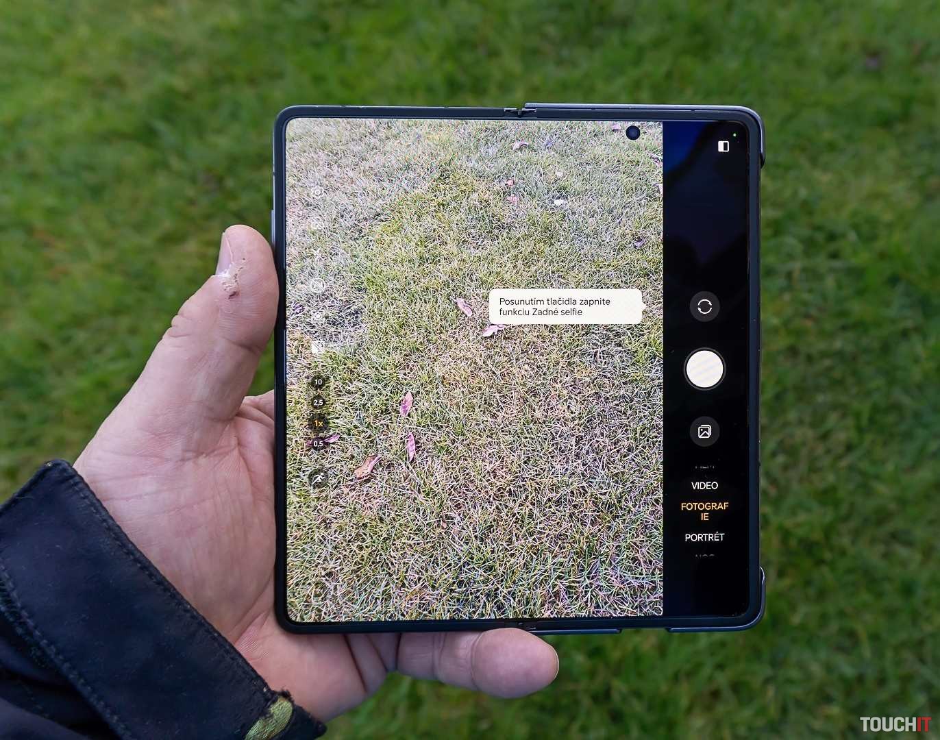 Výhodou skladacieho telefónu je to, že kvalitnú selfie snímku si môžete urobiť aj so zadnými fotoaparátmi a pritom na prednom displeji vidíte ukážku toho, čo fotíte. Rovnako skladačka umožňuje fotiť stabilne aj bez toho, aby ste museli so sebou nosiť statív. Telefón stačí položiť napr. na stôl a dať ho do podoby písmena L. Vtedy prejde aplikácia Fotoaparát do polohy, ktorá umožňuje jednoduchú realizáciu fotiek či videí.