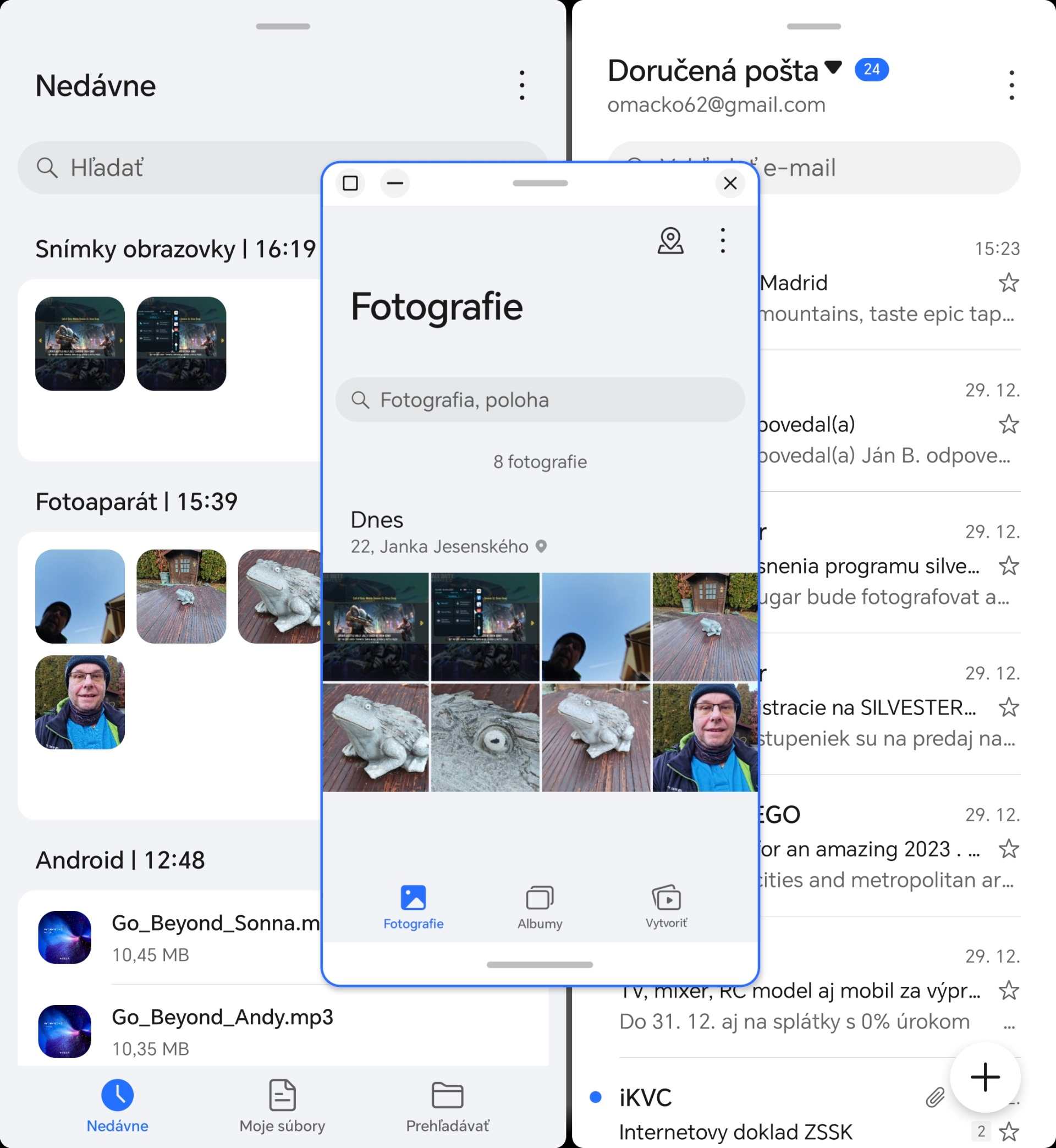 Asi najlepší zážitok z HONOR Magic V2 je práca s predným displejom. Je to skutočne rovnaký zážitok ako s neskladacím telefónom a pri bežnej práci máte len málo dôvodov otvoriť telefón. To totiž robíte až vtedy, keď to naozaj potrebujete – napr. hry, alebo prezeranie či editovanie fotografií alebo videí. Využijete ho aj pri práci s viacerými aplikáciami naraz.