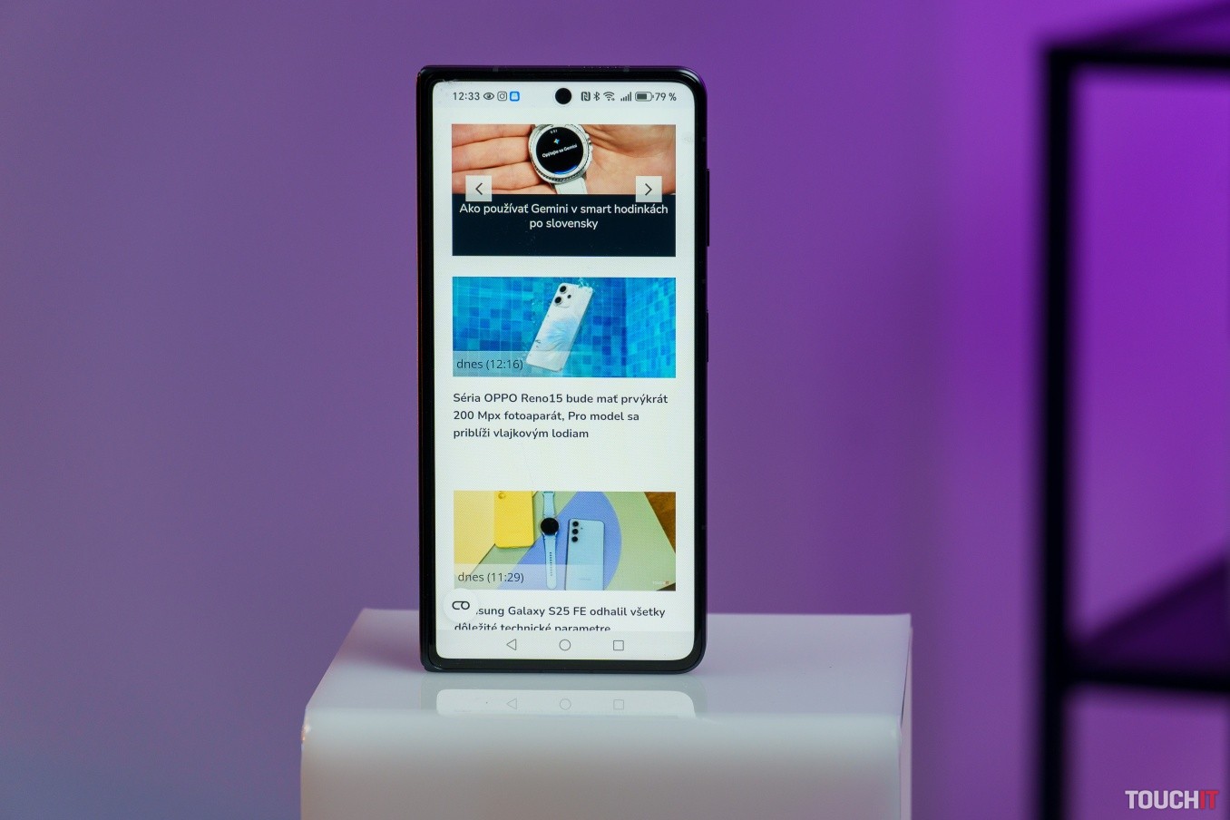 K tomu je ešte 20 Mpx vnútorná selfie kamera. V kombinácii s AI spracovaním obrazu dostávate skutočne krásne zábery – presvedčili sme sa o tom pri fotení aj nakrúcaní videa. Fotografie sú plné farieb, ostré a celkovo vyzerajú veľmi dobre. Páčilo sa nám aj podanie videa v 4K všetkými objektívmi. Doslova prekvapením bolo doostrovanie skutočne vzdialených objektov, čo sa realizuje s využitím umelej inteligencie – Super Zoom. Z oblasti umelej inteligencie je tu ešte AI Zmizík na odstránenie neželaného objektu, AI Zlepšenie snímky a AI Výrez. Za unikátnu funkciu považujeme AI Rozšírenie obrázka, ktorá skutočne dopočíta okolie fotografie a robí to veľmi uveriteľne. A je tu aj AI Video z fotografie priamo zabudované v telefóne.