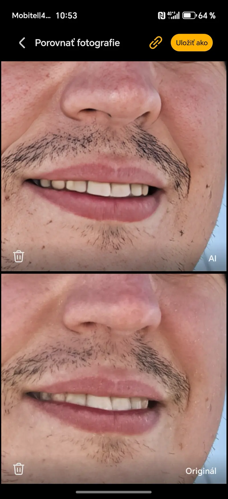 Funkcia AI vylepšený portrét v HONOR Magic7 Pro. Všimnite si, ako umelá inteligencia zlepšila zuby. Osobne preferujem pôvodnú fotku
