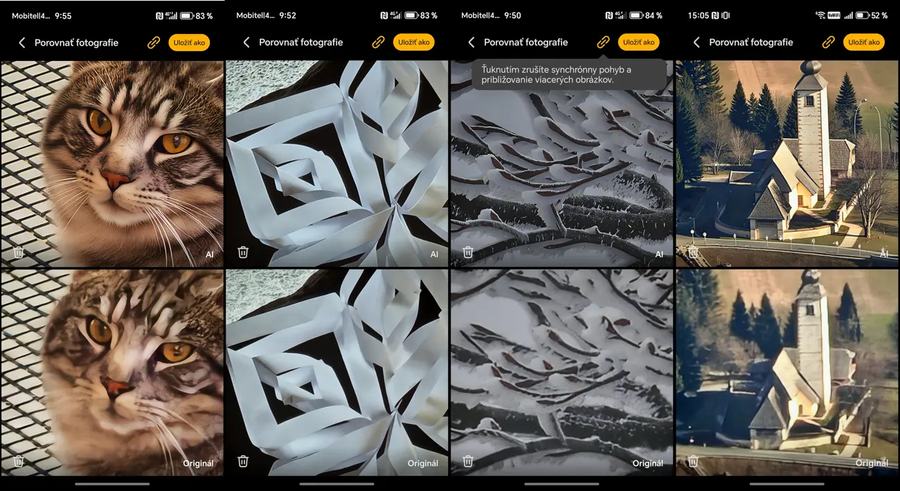 Funkcia AI Super Zoom v telefóne HONOR Magic7 Pro. Porovnanie niekoľkých scén. Niekedy môže byť funkcia prínosom, inokedy je viditeľné, že obrázok generovala umelá inteligencia. A niekedy si aj vymýšľa, ako môžete vidieť na poslednom obrázku
