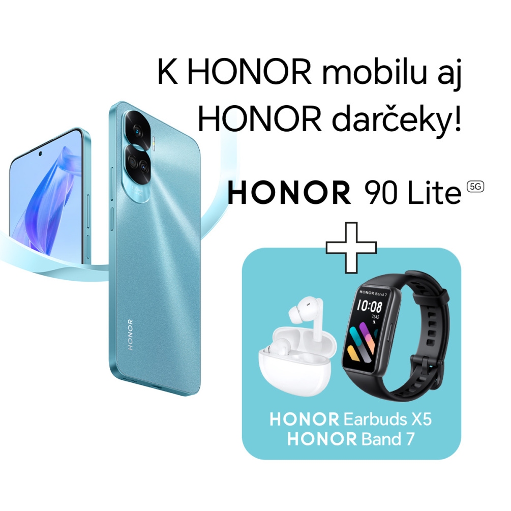 Na Slovensku je najväčší záujem o telefón HONOR 90, ktorý na honorslovensko.sk nájdete v dvojičke s tabletom HONOR Pad X9 alebo kombináciu HONOR 90 Lite, ku ktorým dostanete hneď dve zariadenia. Konkrétne sú to smart hodinky HONOR Band 7 a bezdrôtové slúchadlá Earbuds X5.
