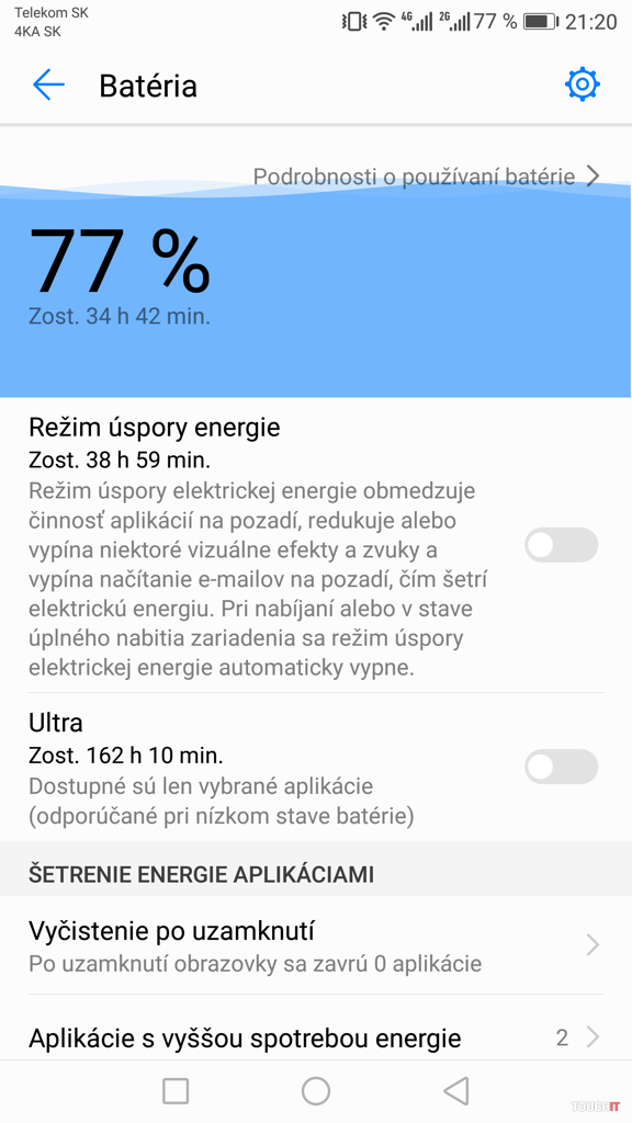 Veľkému telefónu patrí veľká batéria. O tú núdza nebude, novinka má batériu s kapacitou 4000 mAh a podporou Smartpower 5.0. To je systém energetickej správy batérie, ktorý zvyšuje jej výdrž. Výdrž udávaná výrobcom jeň: 1.44 dňa náročného používania, 2 dni bežného používania, 18 hodín prehrávania videa alebo 108 hodín prehrávania hudby.
