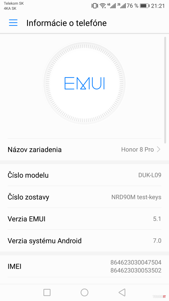 Displej pôsobí dobrým dojmom, farby sú živé a kontrast dostatočný. To, ako sa displej „správa“ v bežnej prevádzke sa dozviete v redakčnej recenzii. Páči sa nám integrácia funkcie, ktorá vo večerných hodinách redukuje vyžarovanie modrého svetla – eye-care mode 2.0.„Konštrukcia Honor 8 Pro je celokovová (unibody) a výborne sadne do ruky. To aj napriek jeho veľkosti – 157 x 76 x 6,97 mm s hmotnosťou 186 gramov.“