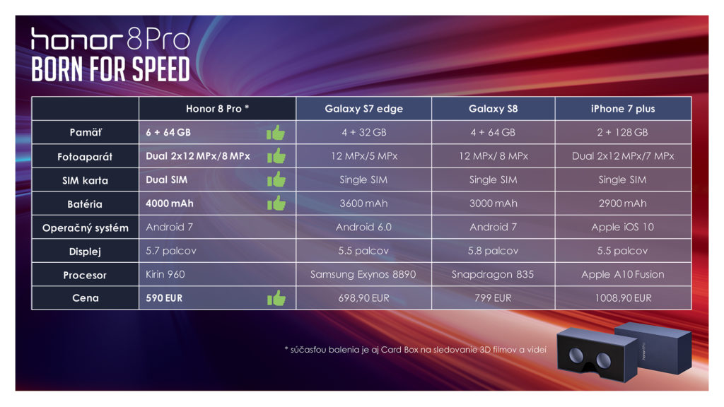 Doplňujeme aj porovnávaciu tabuľku, ktorá prináša hlavné výhody Honor 8 Pro v porovnaní s konkurenciou.
