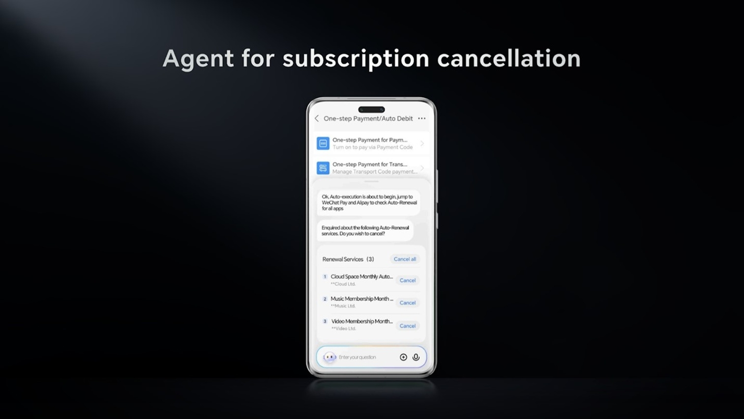 HONOR AI Agent je osobný asistent navrhnutý tak, aby zlepšoval každodenný život používateľov. Vďaka intuitívnemu pochopeniu požiadaviek a zámerov používateľov prostredníctvom technológie jazykovej analýzy a povedomia o používateľskom rozhraní sa AI agent učí zo zvykov a prostredia zariadenia a dokáže inteligentne prijímať rozhodnutia vo viacerých aplikáciách a službách. Táto schopnosť umožňuje automatizovať zložité úlohy. HONOR predviedol, ako nájsť a zrušiť neželané predplatné v rôznych aplikáciách pomocou niekoľkých jednoduchých hlasových príkazov.