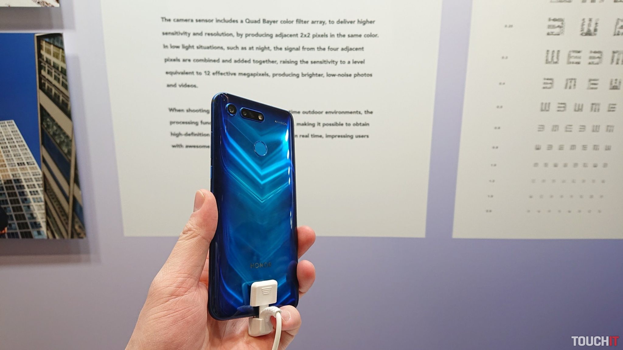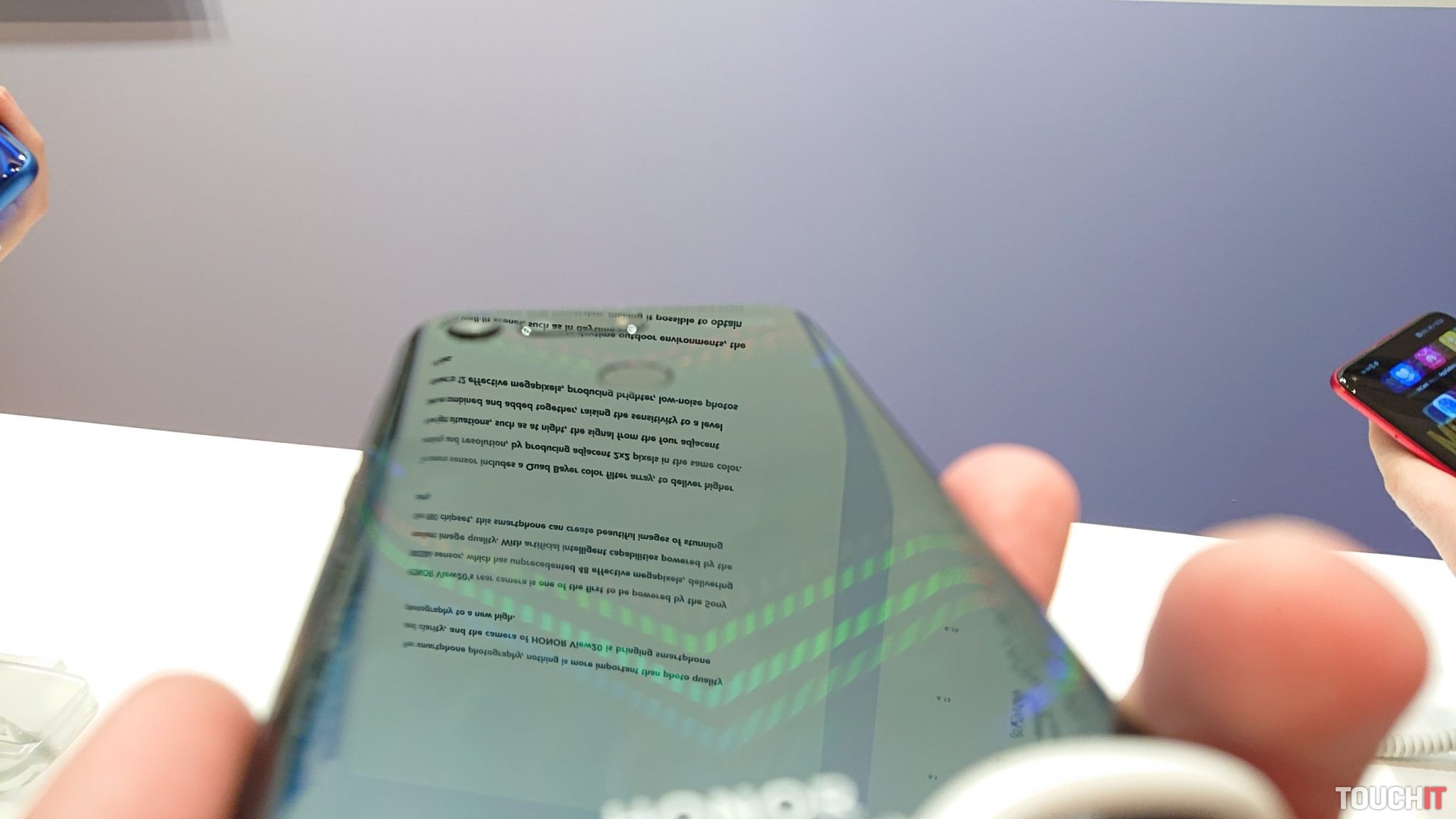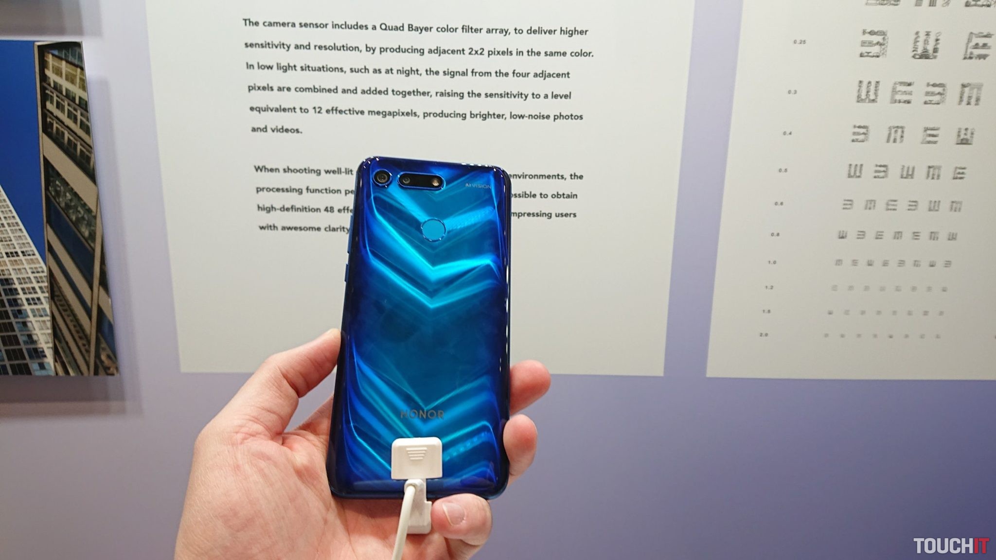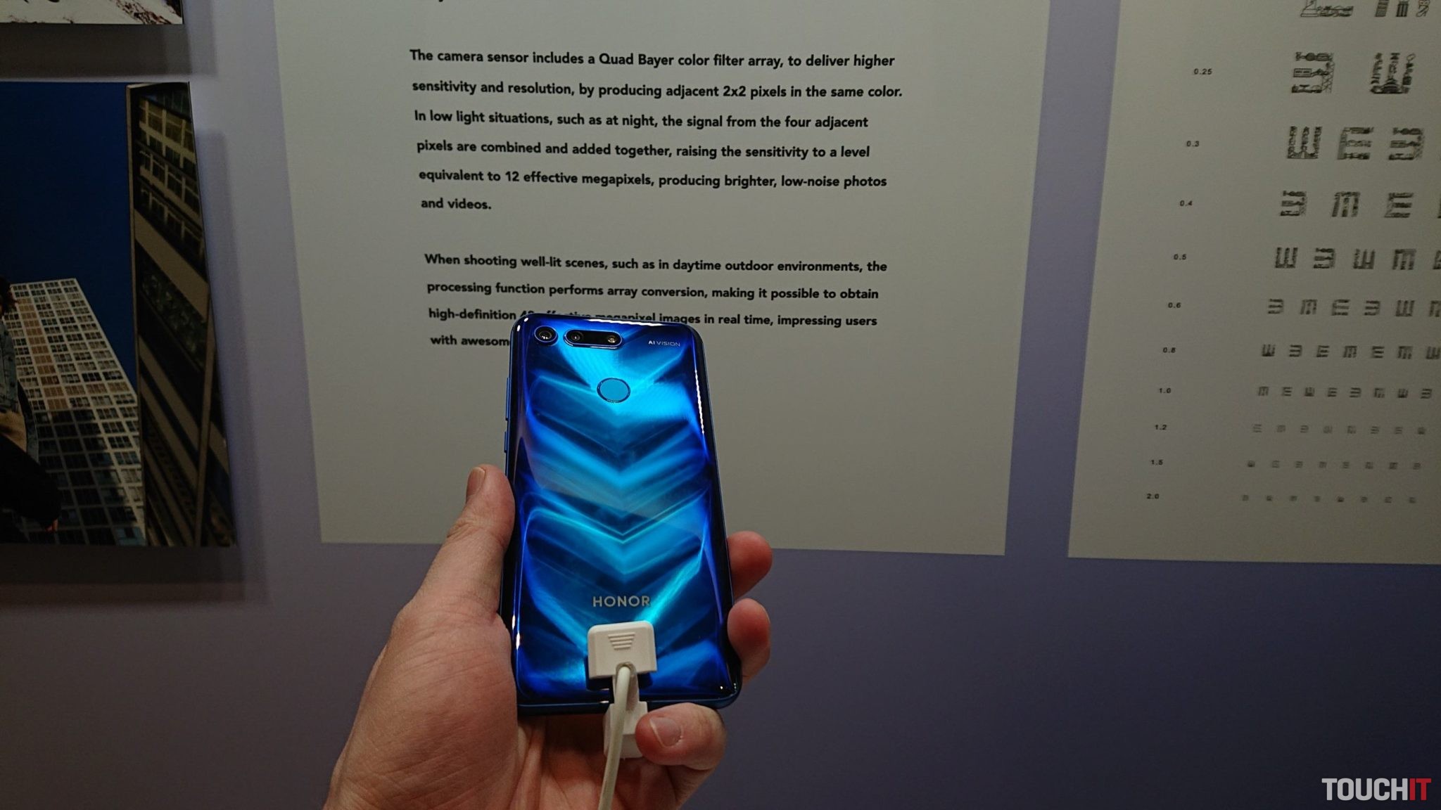 Špecialitou je, že kruhový výrez v displeji na to, aby sa doň zmestil fotoaparát má priemer iba 4,5 mm. Je to niečo čím sa Honor chváli a zameranie na čo najmenší priestor, ktorý by zabral predný fotoaparát, mu nemožno uprieť. Má rozlíšenie 25 Mpx.