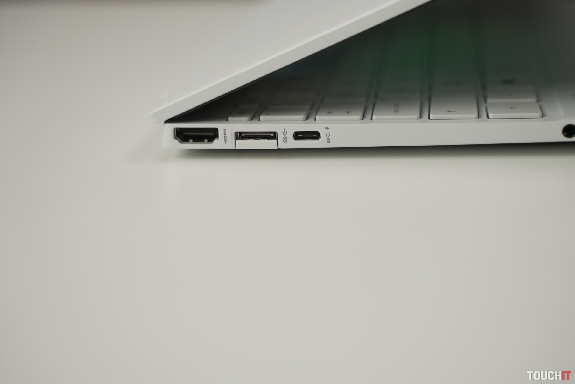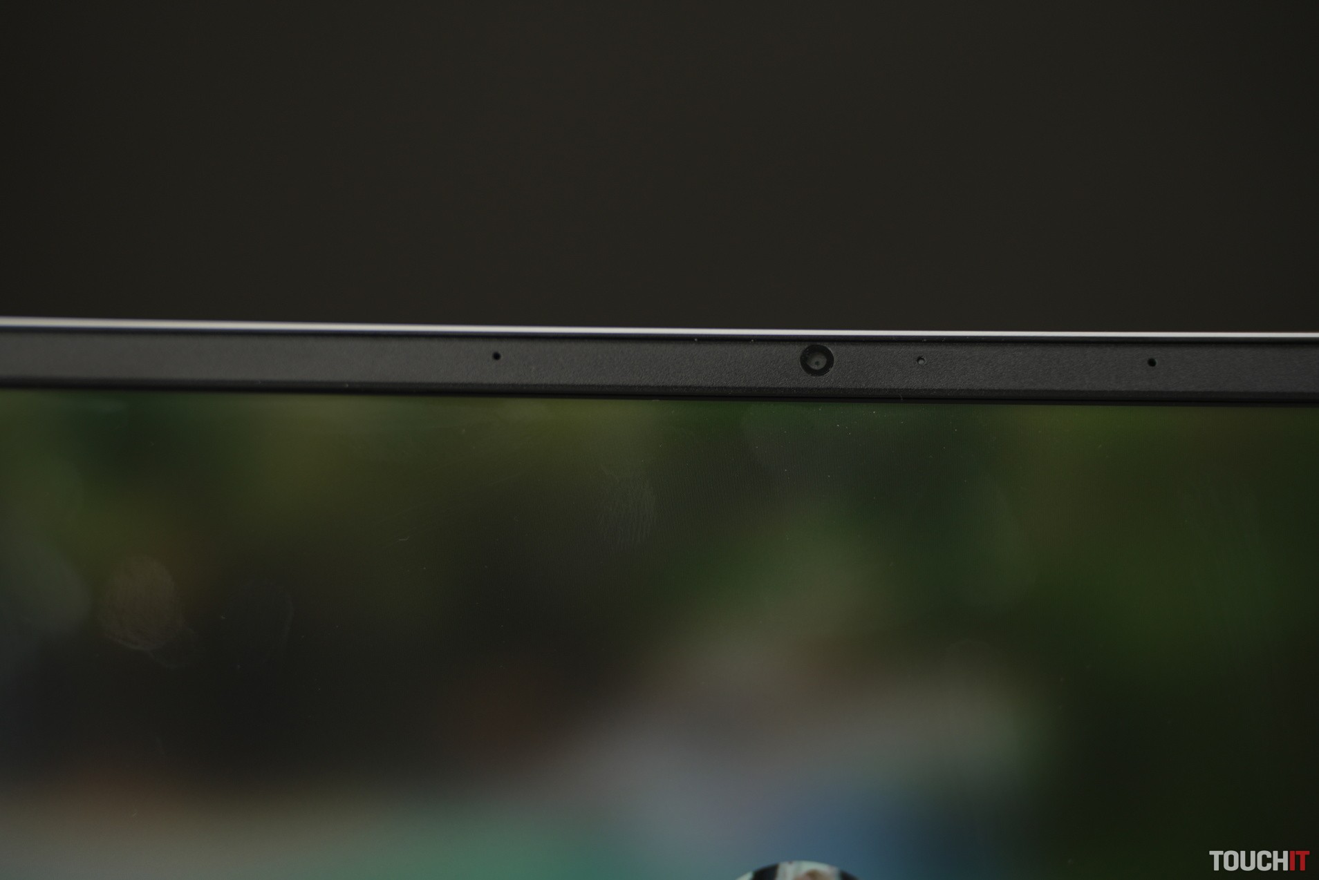 Touchpad je jednoliaty, funguje dobre a jeho povrch je oproti opierke na dlane výrazne hladší. Treba ho ale stlačiť viac naspodku, inak síce „klikne“ ale nenastane udalosť pre ľavé alebo pravé tlačidlo myši. Čítačka odtlačkov je spoľahlivá a biela na bielom nenápadná. Iné biometrické prihlasovanie tu nie je. Škoda, že rám displeja nemá pri kamere mechanický kryt. To by som využil.