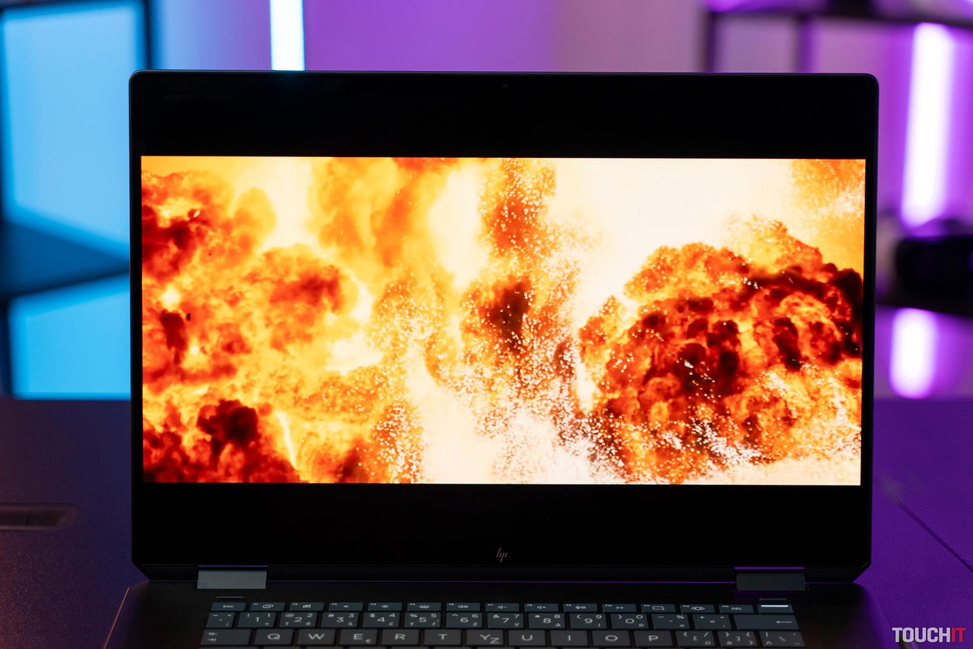 Na 16-palcovom OLED displeji s pomerom strán 16:10 sa výborne zobrazujú filmy. Je tu aj podpora pre IMAX (týka sa obrazu aj zvuku) a variabilná opakovacia frekvencia displeja je od 48 po 120 Hz. Filmy s IMAX ENHANCED podporou pritom môžete nájsť napr. na serveri Disney+. Pomer plochy displeja k celkovej ploche notebooku je 90 %.