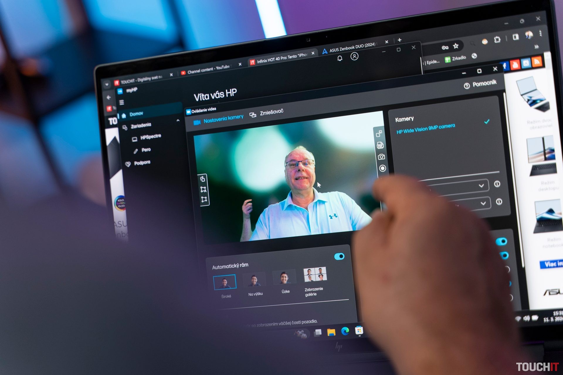 Špecialitou je práve realizácia video konferencií. Na to je HP Spectre X360 vybavený nadštandardne softvérovo aj hardvérovo. Bez toho, aby ste si všimli úbytok výkonu má pri video konferencii za sebou rozostreté pozadie, pokojne sem môže dať aj niektoré z preddefinovaných pozadí. Hlas sa zachytáva vo veľmi dobrej kvalite zabudovaným systémom mikrofónov. Ďalšie možnosti sú v softvérovom posilnení očného kontaktu s poslucháčmi (EyeContact), potlačení blikania od vonkajšieho osvetlenia (Anti flicker) a je tu aj automatické zarámovanie vás ako osoby napr. v strede obrazu.