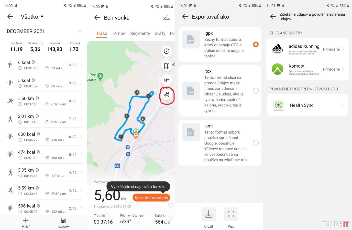 Bez ohľadu na to, export dát z aplikácie Huawei Zdravie je funkcia, po ktorej používatelia volajú už niekoľko rokov. A hoci nie je zatiaľ bezchybná, oceňujeme, že ju Huawei do svojej aplikácie konečne zakomponoval. Pre úplnosť dodáme, že Huawei Zdravie v Android a Huawei verzii umožňuje priame odosielanie dát do služieb Adidas Running by Runtastic a Komoot (obrazovka Ja v aplikácii Huawei Zdravie > Správa súkromia > Zdieľanie údajov a povolenie zdieľania údajov).