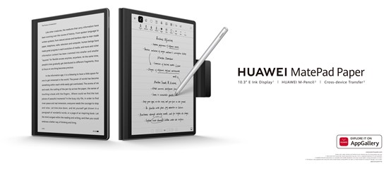 Tento tablet je vybavený 10,3-palcovým E-Ink FullView displejom s pomerom obrazovky k telu 86,3 %. Je vybavený algoritmom E-Ink Display Enhancement Algorithm, ktorý prináša prirodzený zážitok podobný papieru. Spolu s HUAWEI M-Pencil 2. generácie podporuje MatePad Paper viacero vstupných metód, ako je písanie rukou, hlasový záznam a konverzia písania rukou na text.