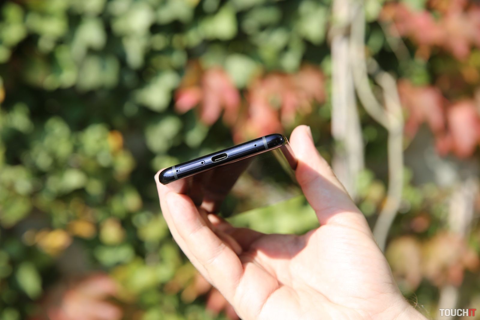 Telefón má zaoblené boky spredu aj zozadu. Vďaka tomu sú bočné hrany veľmi tenké a výrobca na ne umiestnil iba napájacie tlačidlo a tlačidlá na reguláciu hlasitosti. Šachta na SIM karty sa premiestnila na spodnú hranu a nájdete ju tam, kde majú ostatné telefóny reproduktor. Ide o zaujímavé riešenie, kvôli ktorému sa presunul spodný reproduktor priamo pod USB-C port. Na tele ho teda nevidíte, avšak pri počúvaní hudby je zrejmé, odkiaľ zvuk vychádza. Pod kvalitu reprodukcie sa atypické umiestnenie podpisuje iba minimálne, stále si zachováva vysokú kvalitu.