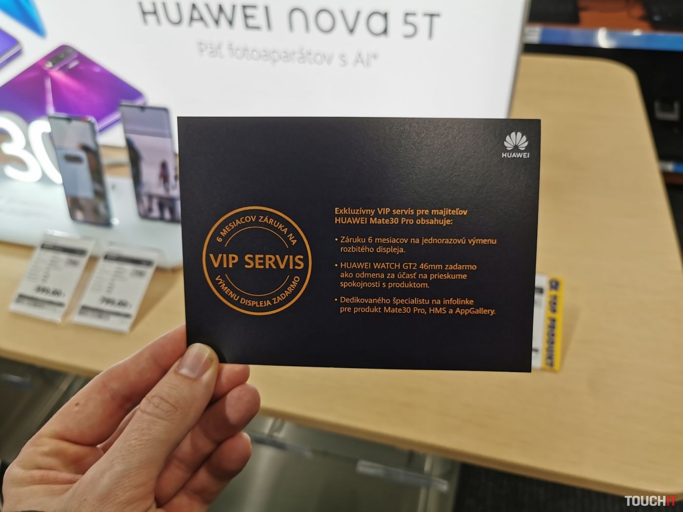 Na všetky tieto darčeky vás upozorní zástupca spoločnosti Huawei počas prezentácie. Takisto vás oboznámi s VIP servisom, ktorý môžete bezplatne získať spoločne s Mate 30 Pro. Tento servis obsahuje záruku 6 mesiacov na jednorazovú výmenu rozbitého displeja, už spomenuté hodinky ako odmenu za účasť v prieskumu a dedikovaného špecialistu na infolinke, ktorý vám poradí s telefónom Mate 30 Pro, obchodom AppGallery či inštaláciou aplikácií.