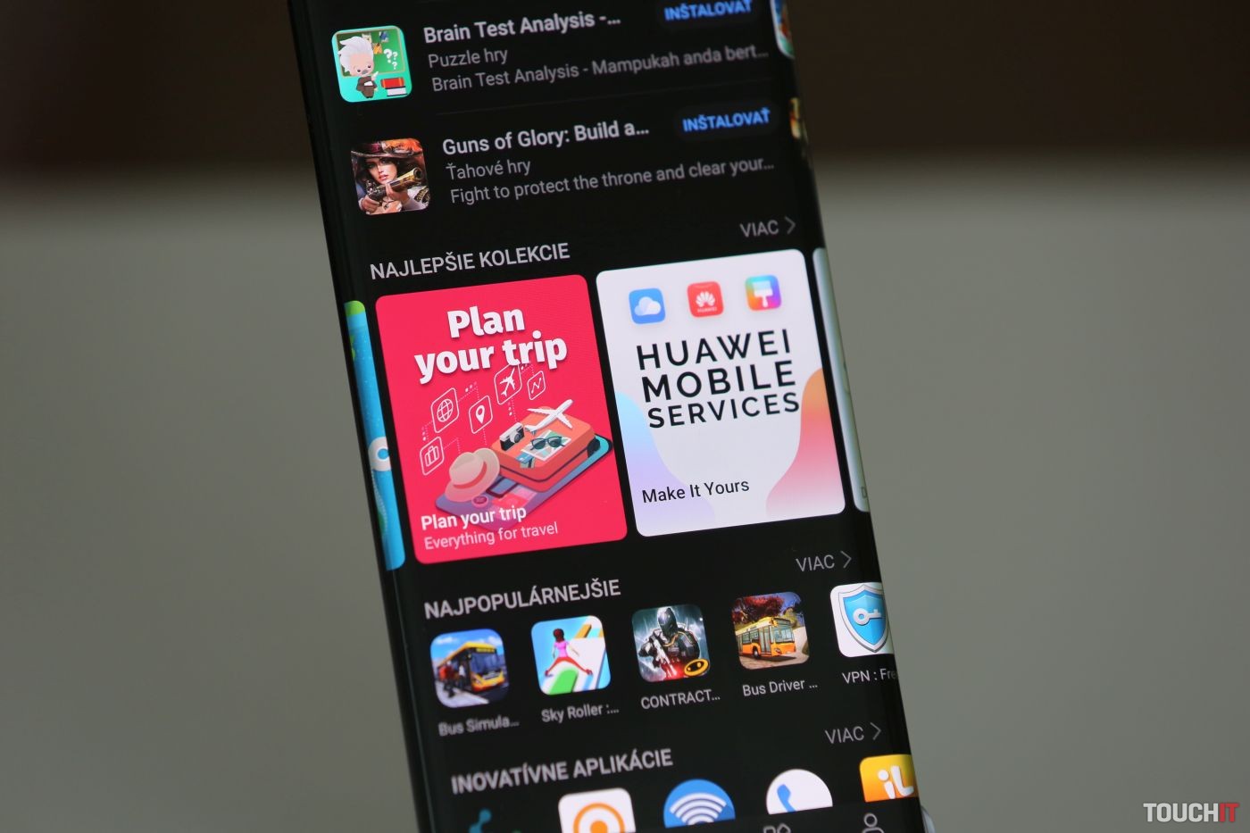 Druhýkrát si absenciu Google služieb uvedomíte o pár minút neskôr, keď si budete chcieť nainštalovať aplikácie z obchodu. Google Play vo výbave Mate 30 Pro samozrejme tiež nie je a tak vás Huawei odkáže na vlastný obchod AppGallery. Ten sa za posledné mesiace viditeľne zlepšil, pribudlo viacero aplikácií, ktoré používame aj my. Ešte stále však nie je na takej úrovni, aby nám plnohodnotne nahradil Obchod Play. A preto sme si nainštalovali obchod Aurora Store, ktorý odporúčame aj vám.