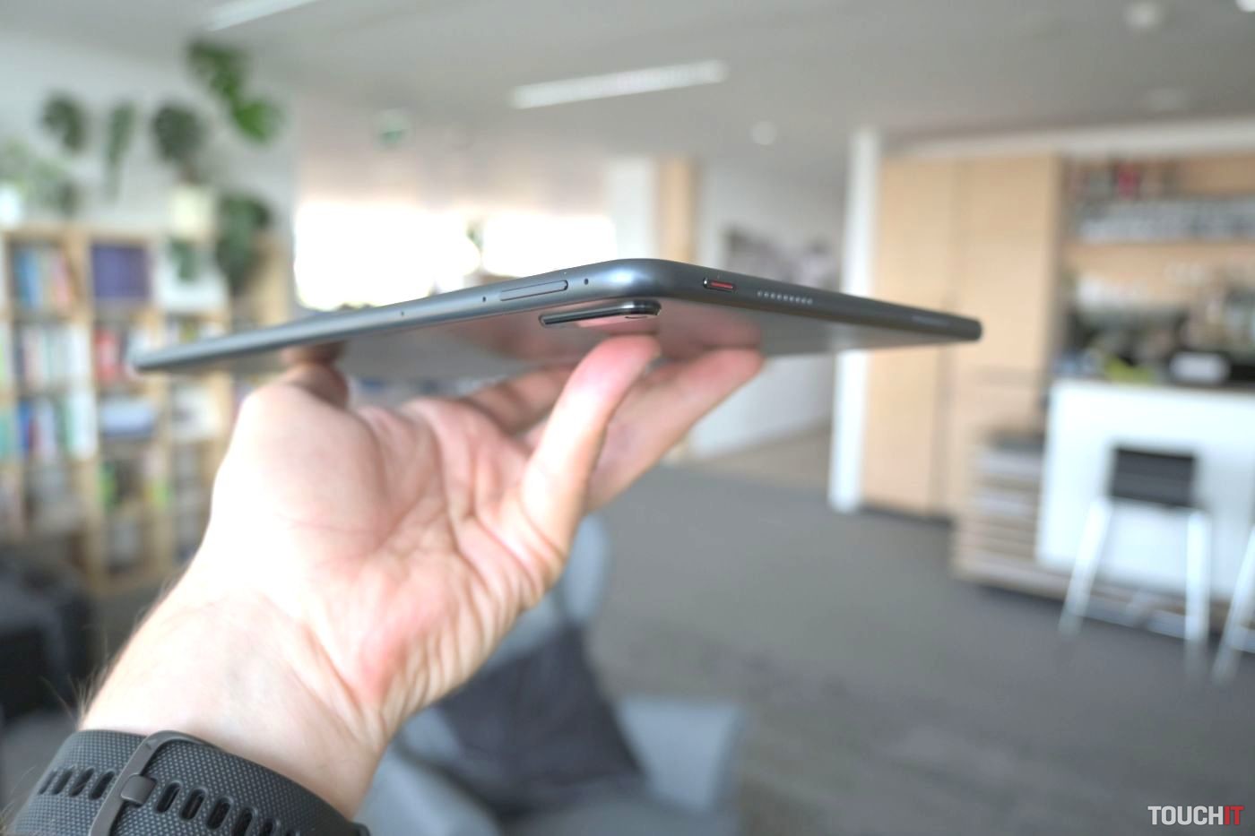 Tablet je vďaka tomu pomerne kompaktný a to aj napriek 11-palcovému displeju, ktorý ponúka. Jeho rozmery sú 253,8 × 165,3 × 7,3 mm, hmotnosť je 485 gramov. Telo je z plastu – osobne mi to však neprekážalo, keďže použitý materiál nepôsobí lacným dojmom.