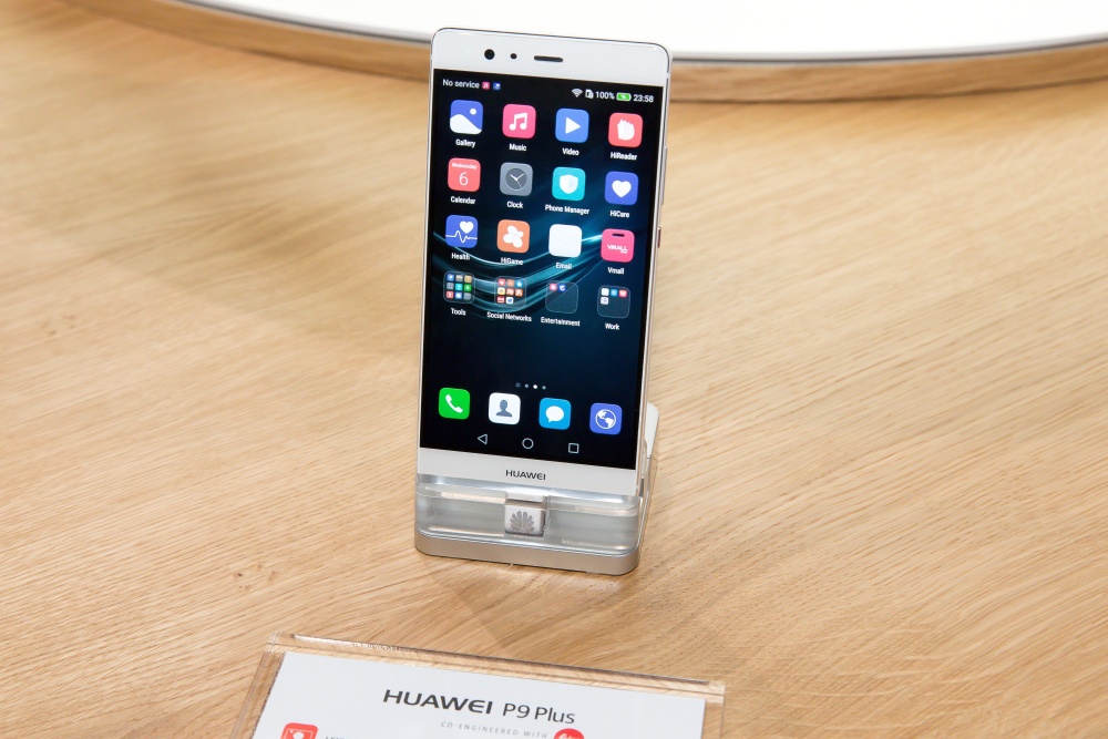 Ďalej Huawei ukázal aj telefón s väčšou, 5,5-palcovou uhlopriečkou s označením P9 Plus. Ten je tiež kompaktný s hrúbkou 6,98 mm a navyše podporuje snímanie tlaku prsta na displej (Huawei to volá Press Touch a rozpoznáva dve úrovne tlaku). Jeho batéria má kapacitu 3400 mAh, vydrží na 2 dni bežnej prevádzky alebo 14 hodín prehrávania videa. Vybavený je dvojicou reproduktorov, umožňuje tiež rýchle nabíjanie a aj ovládanie zariadení cez infračervený vysielač. Na výber sú 4 farebné vyhotovenia. Pamäťová kapacita je 4/64 GB a predajná cena je 749 eur.