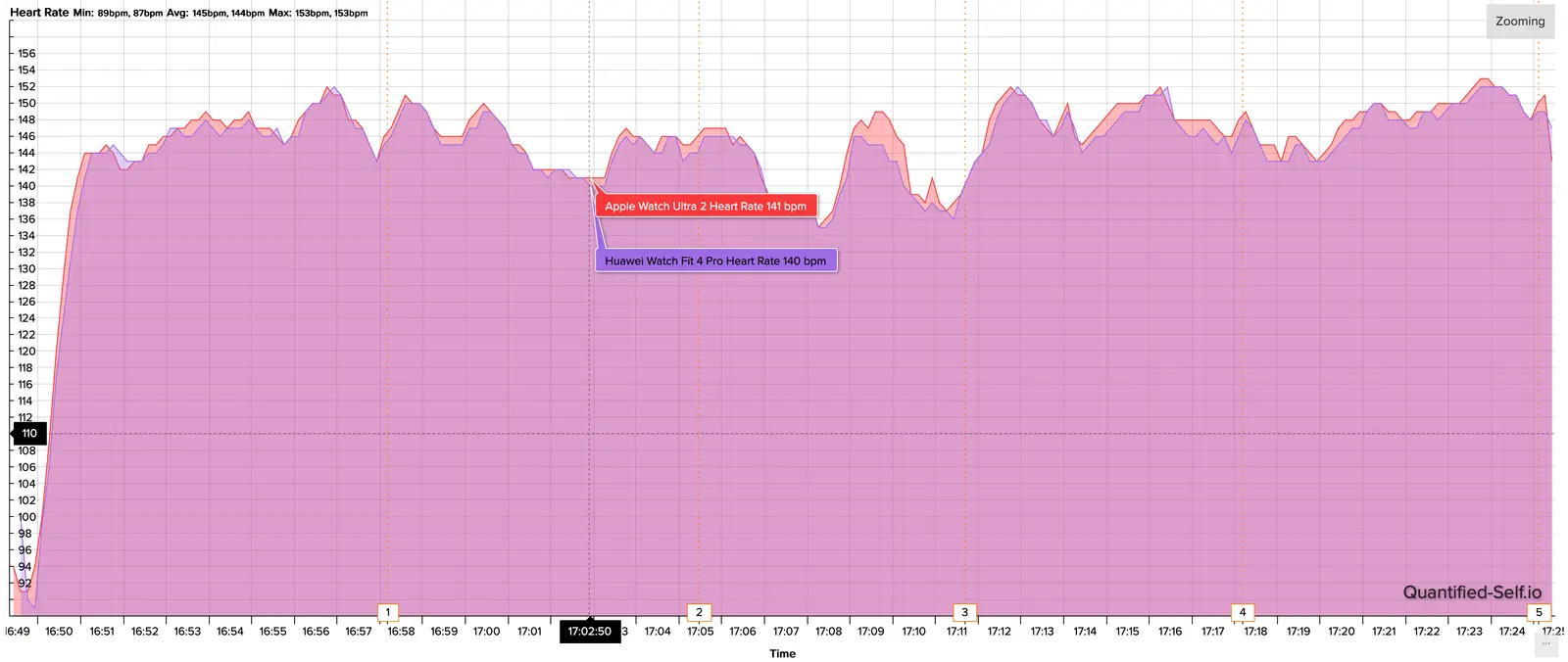 Huawei Watch Fit 4 Pro: Presnosť merania tepu počas intervalového tréningu
