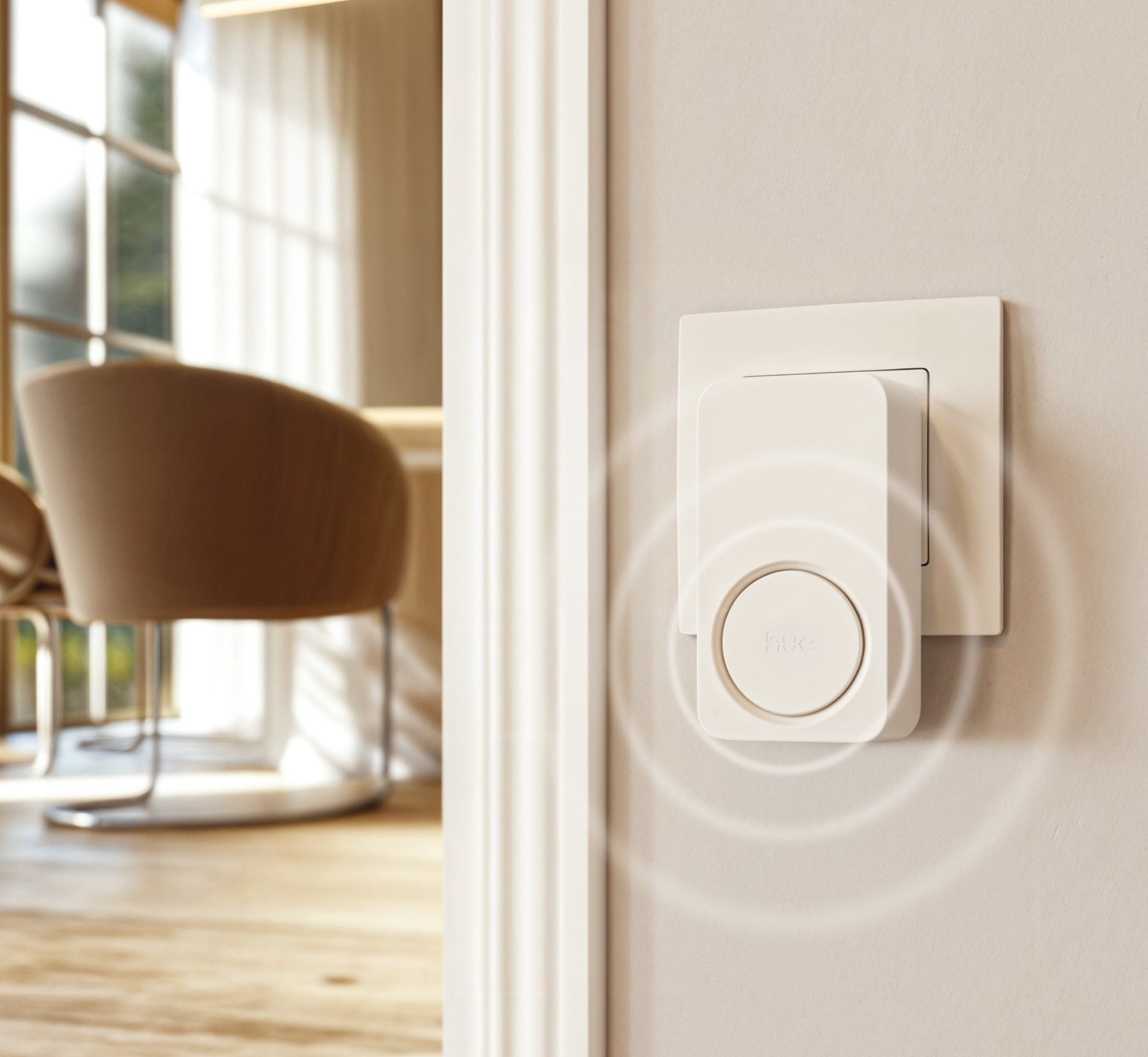 Nový inteligentný zvonček Hue Smart Chime spolupracuje s videozvončekom Hue Secure, aby ste boli vždy informovaní, keď niekto príde. Keď niekto zazvoní na zvonček, spustí sa nastaviteľný zvukový signál a súčasne sa môžu aktivovať blízke svetlá Hue, ktoré poskytujú vizuálne aj zvukové upozornenia. Okrem toho môžete nastaviť tichý budík alebo rôzne tóny pre rôzne časy dňa – napríklad jemnejší zvuk v noci a veselšie upozornenie počas dňa. Hue Smart Chime môžete umiestniť kdekoľvek vo vašej domácnosti – v pracovni, spálni, kuchyni alebo iných miestnostiach. Takže vždy jasne počujete upozornenie, bez ohľadu na to, kde sa nachádzate.