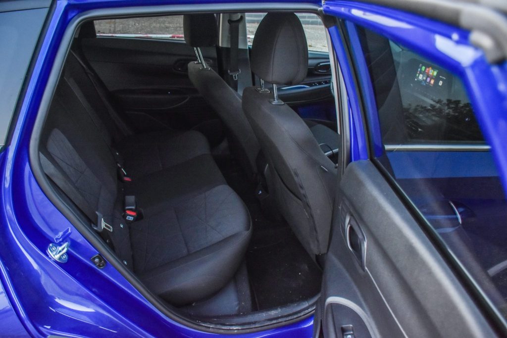 Stredový displej je mierne natočený na vodiča, ktorý má vždy výborný prehľad o tom, čo stláča a kde kliká. Som rád, že ovládanie 1-zónovej klimatizácie zostalo vo fyzickej podobe. Jednoduchý no zároveň dobre organizovaný interiér mi robil skutočne radosť. Oku ľúbivé sú aj kovové pedále i jemné ambientné podsvietenie a pravá ruka sa poteší dostatočne širokej lakťovej opierke. Vzdušnosť interiéru je v prednej časti veľmi dobrá a najhoršie na tom nie je ani druhý rad.