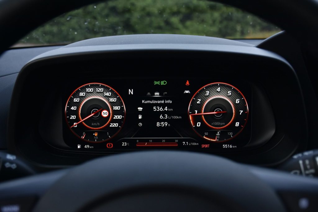 Zaujme aj dobrá odozva akcelerátora, ideálne v režime Sport, kedy sa trošku zmení naladenie elektroniky a reálne to cítiť. Rovnako to platí aj pre režim ECO, kedy sa z auta stane omámená toluénová bábika, no vo výsledku dosiahnete o niečo lepšiu spotrebu. Tá sa v bežnej kombinovanej prevádzke pohybovala medzi 5,8 až 6,3 l/100km, čo vôbec nie je zlé s ohľadom na to, že som nejazdil úplne „spotrebovo“. Okresné cesty dokážete brázdiť aj pod 5,5 l/100km. Čisto diaľničná spotreba vyšla na 6,1 l/100 km (130 km/h = 2900 rpm).