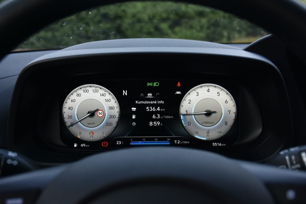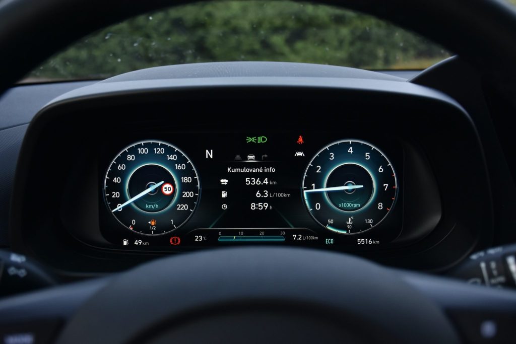 Hyundai BAYON som mal na test s jednolitrovým benzínovým 3-valcom, ktorý ponúka výkon 74 kW a max. krútiaci moment 172 Nm. Tento motor(ček) bol kombinovaný s príplatkovým 7-stupňovým automatom DCT s Drive Mode (3 režimy: Sport, ECO, Normal). Osobne nie som zástanca nízko-objemových motorov, no aj v tomto prípade platí, že ide o dôkladne vyladený agregát, ktorý ponúka primeranú dynamiku a pružnosť, občas až prekvapivo dobrú.