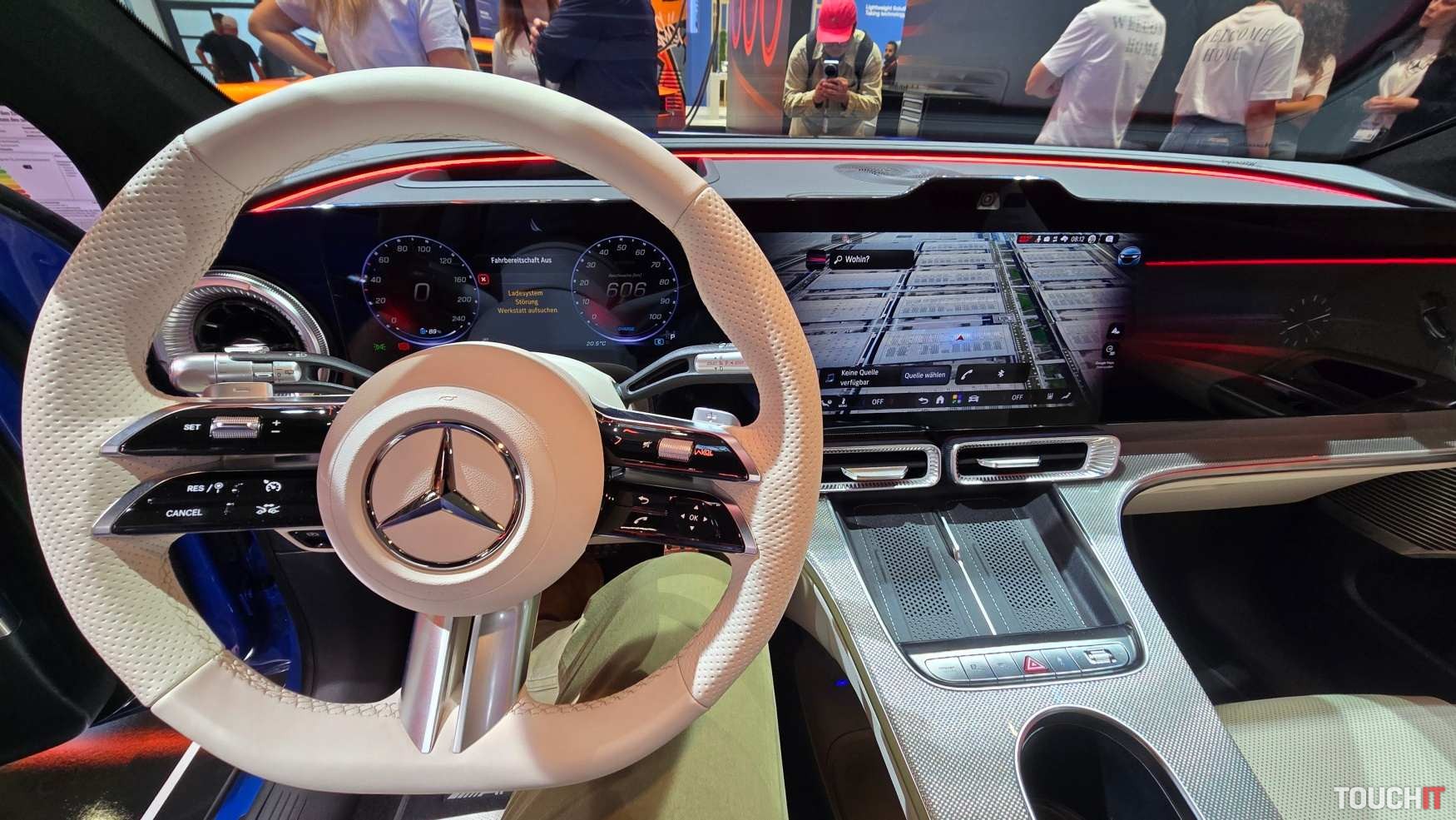 V interiéri posúva značka Mercedes-Benz filozofiu dizajnu zmyselnej čistoty na novú úroveň. Majestátne sa vznášajúca Hyperobrazovka MBUX ďalšej generácie vytvára pôsobivý priestorový zážitok s digitálnou eleganciou. Aktívne náladové osvetlenie umocňuje futuristický dojem. Vďaka veľkorysej ponuke priestoru, najmä v zadnej časti interiéru a panoramatickej streche, ktorá je súčasťou sériovej výbavy, pôsobí interiér otvoreným a elegantným dojmom. Panoramatická strecha sa na želanie dodáva s prepínateľným sklom a náladovým osvetlením, ktoré osvetľuje 162 hviezd na nočnej oblohe.