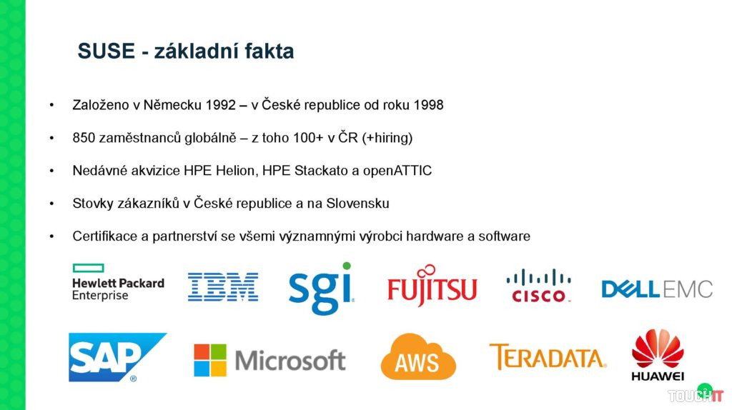 „SUSE Linux Enterprise Server nám tiež dáva lepšiu možnosť aktualizácií a inštalácie bezpečnostných záplat, pretože nemusíme reštartovať server. Tým chránime naše kritické aplikácie SAP a nedochádza k odstávkam. A ak už nejaký problém máme, môžeme rýchlo siahnuť do rozsiahlych online prostriedkov, aby sme naše systémy nahodili, “ vysvetľuje Matejkov výhody nového riešenia.