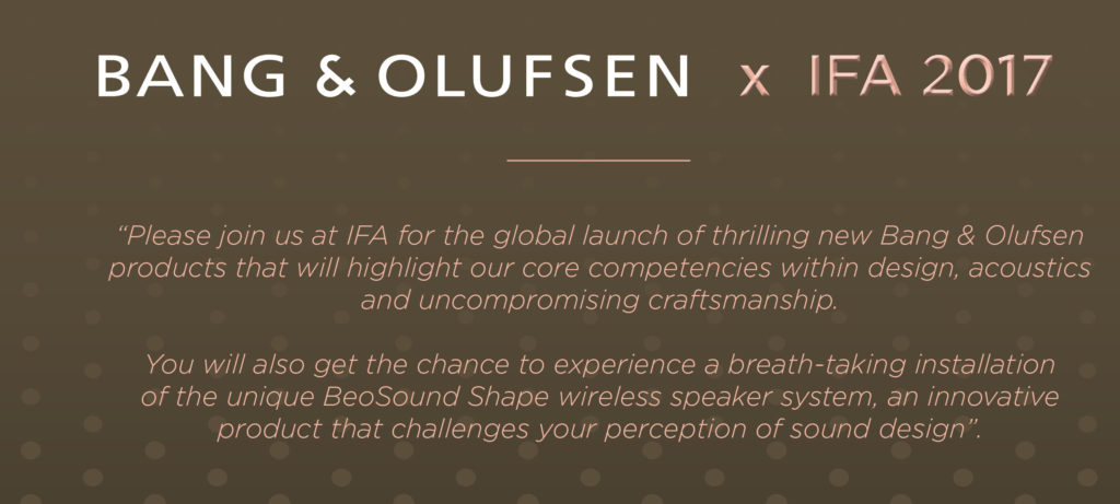 Tlačovú konferenciu chystá aj táto audio a TV značka. Zatiaľ nie sú známe detaily konferencie, ale vždy je to o novinkách oblasti audia. Bude sa konať vo vymedzených časových slotoch, na ktoré sa treba špeciálne registrovať. 30. augusta budeme pri tom a zistíme s akými novinkami v oblasti hi-fi audia prichádza táto značka.