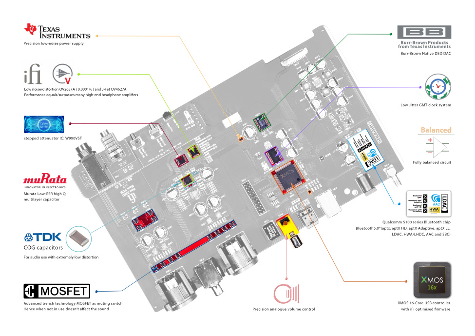 Rovnako ako digitálne káblové vstupy, ponúka NEO iDSD vysokú kvalitu bezdrôtového príjmu Bluetooth 5.0. Nie je však Bluetooth, ako Bluetooth. iFi bola totiž prvou zvukovou značkou, ktorá dodávala produkty využívajúce procesor Bluetooth QCC5100 od spoločnosti Qualcomm. Kombináciou tohto čipu s vlastnými obvodmi sa dosiahol vynikajúco znejúci Bluetooth systém, ktorý je teraz zabudovaný aj do NEO iDSD. Aj keď je využitie Bluetooth pripojenia často používané, mnoho ľudí si neuvedomuje, ako dobre môže Bluetooth znieť. Tento spôsob pripojenia totiž zažili iba na základnej úrovni pomocou starších implementácií. Toto je hneď niečo iné – široké spektrum zvuku, takmer nulové oneskorenie a doslova hmatateľný zvuk teraz aj bez káblov.