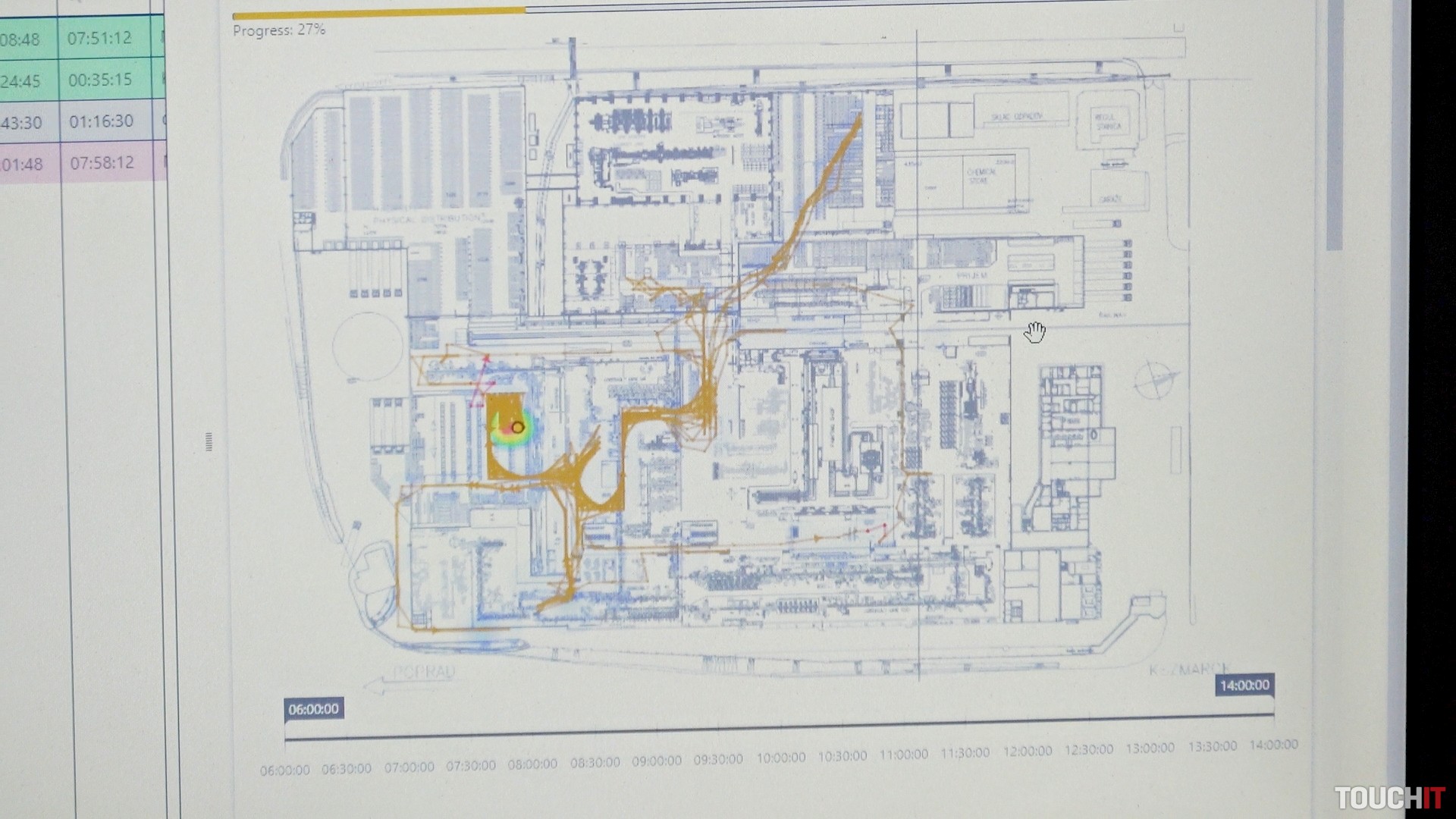 Pre manažmet podniku a možnosť sledovania stavu aj v histórii sme videli reportovací systém na notebooku. Takto sa dajú sledovať aj miesta a časy, kde sa vozíček najviac zdržiava, tzv. tepelné mapy. Cieľom je čo najviac zvýšiť efektivitu pohybu vozíka v rámci celého podniku. Do budúcnosti sa tak aj presne určí trasa pre vozík, ako sa má pohybovať pri požiadavke na dovoz materiálu.