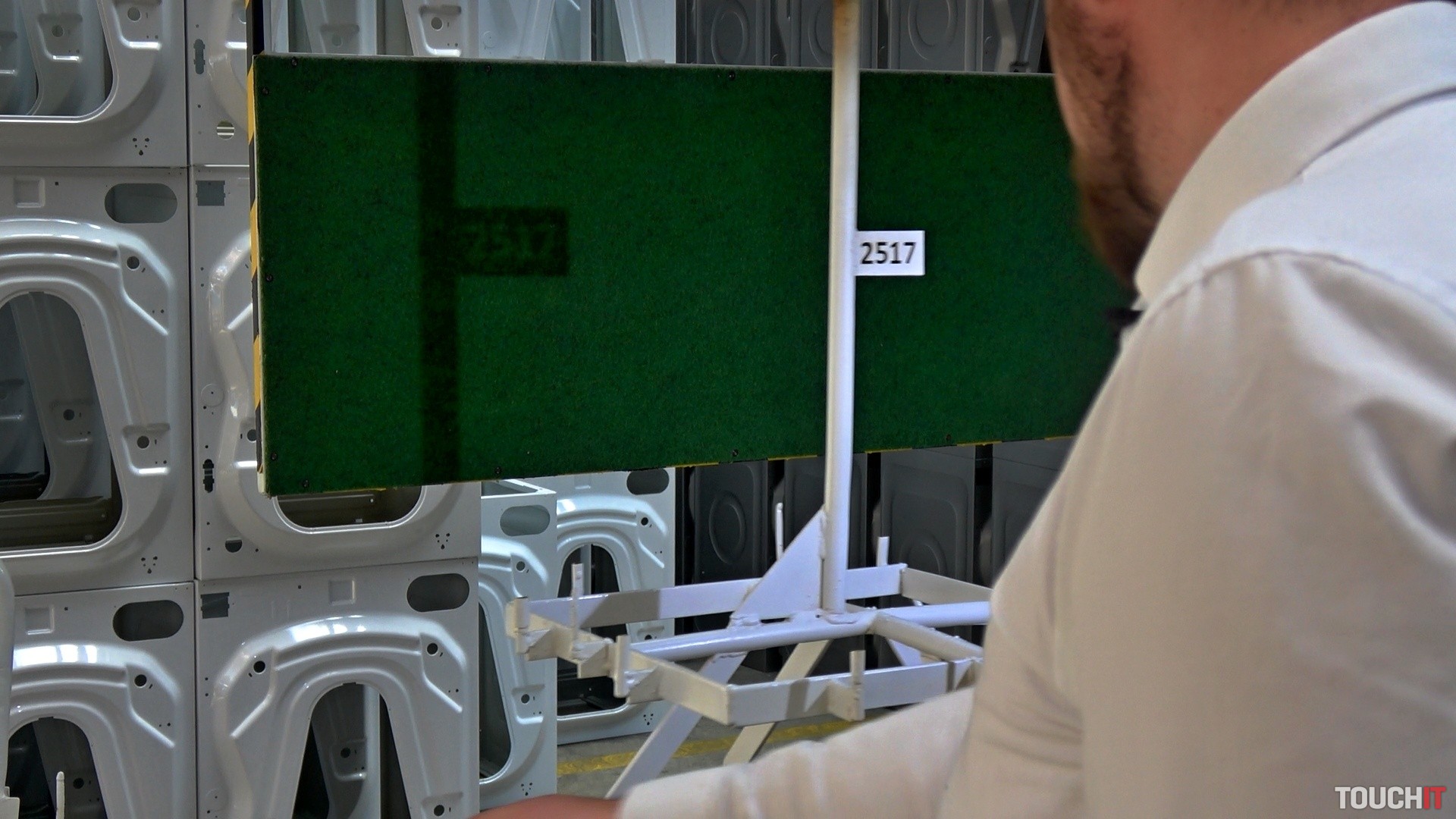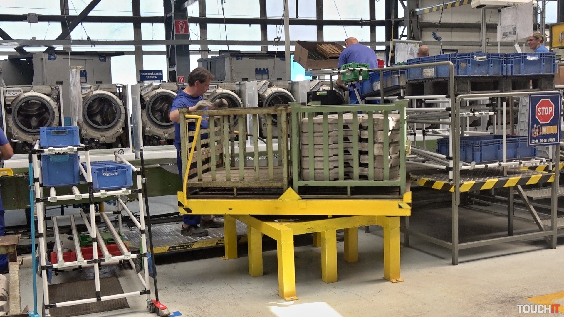 Tiež sme si prezreli automatizovanú prácu pri vypaľovaní košov do práčok. Každý kôš má pritom pridelené unikátne číslo a keď prejde popred osvetlenú tabulu, rozpozná sa toto číslo pomocou softvéru a kamery a hneď aj zavedie do systému. Takto sa eviduje životný cyklus každého jednotlivého koša. Systém rozpoznávania je pritom schopný dobre prečítať číslo koša aj vtedy, ak je kôš silne rozkývaný.