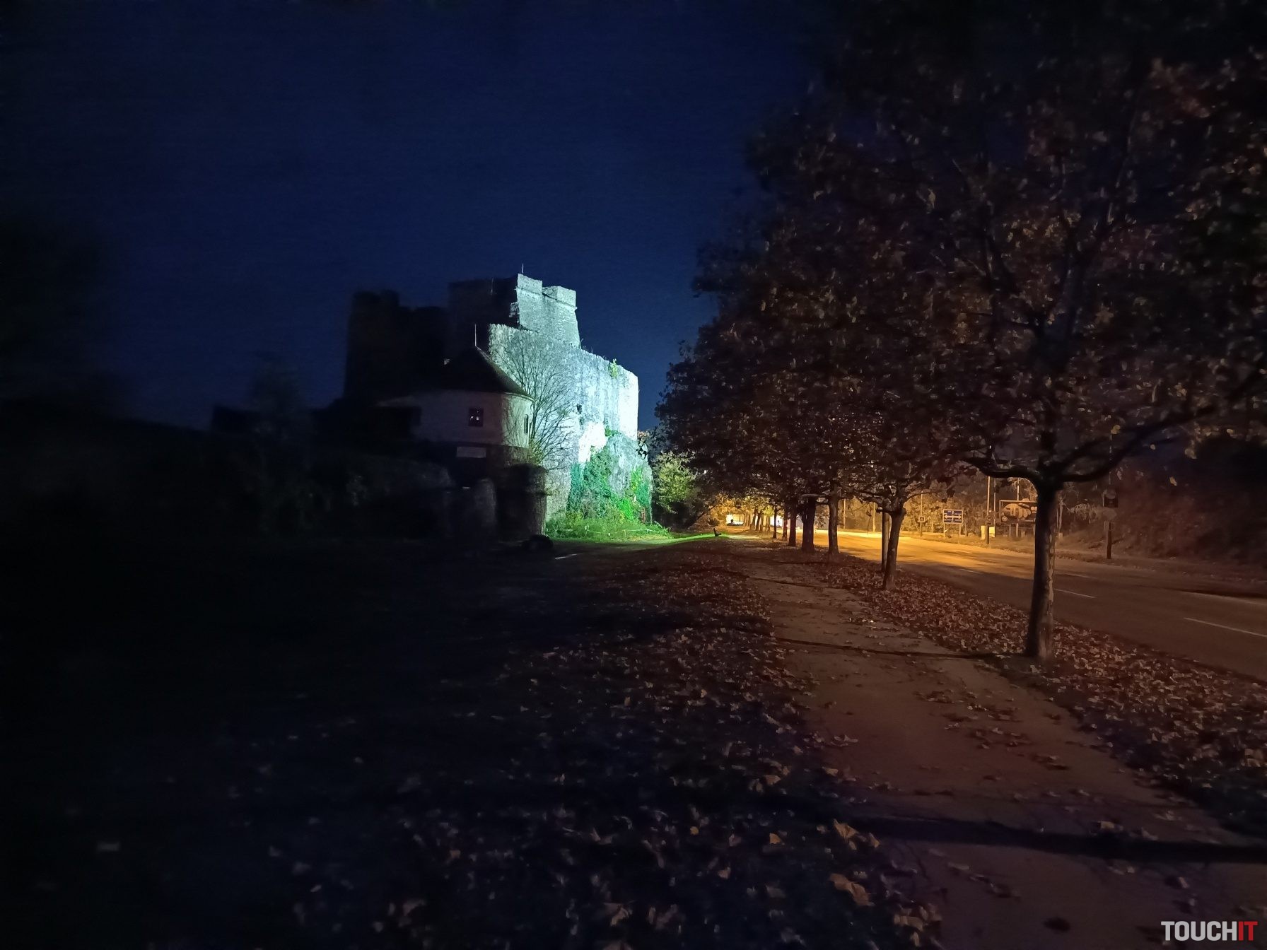 Jeden zo zaujímavých efektov je fotografovanie v nočnom režime. Dá sa ľahko nastaviť pri výbere režimu a skutočne poskytne oveľa lepšie výsledky ako pri fotení pomocou štandardného režimu. Mimochodom aj štandardný režim používa umelú inteligenciu a hneď vidíte, že rozpoznáva to, čo fotíte – napr. pohľad na osobu, na ulicu, krajinu a pod. Podľa toho aj prispôsobuje parametre fotenia a neskoršie vylepšenie výsledku. Nočný režim vyžaduje istý čas držať telefón pri fotení pevne, je to okolo 3 sekúnd. Postačuje naozaj držať ho len v ruke, nemusíte mať statív. Porovnajte výsledok zo štandardného režimu a režimu v noci.
