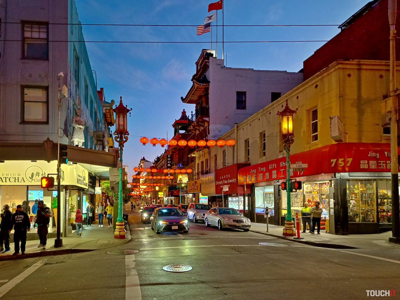 Zadný 200 MPx fotoaparát umožňuje združovanie pixelov a to znamená fotenie pri nedostatku svetla s relatívne nízkym rušením. Takto sme z ruky fotili v časti Chinatown v San Franciscu.