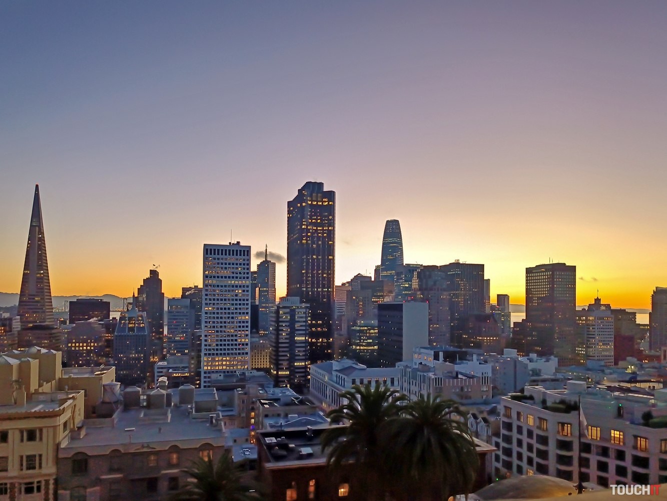 Samozrejme, väčšina ľudí bude fotiť a nakrúcať videá vo vopred nastavenom štandardnom režime a pri našom teste sme ho vyskúšali pri podmienkach, ktoré dobre preveria jeho možnosti. Na ďalšej fotografii je úsvit v centre San Francisca, pričom dáte scéna dobre demonštruje možnosti fotografovania pri vysokom kontraste. Vychádzajúce slnko bolo za budovami, ktoré tak boli čiastočne v tieni.