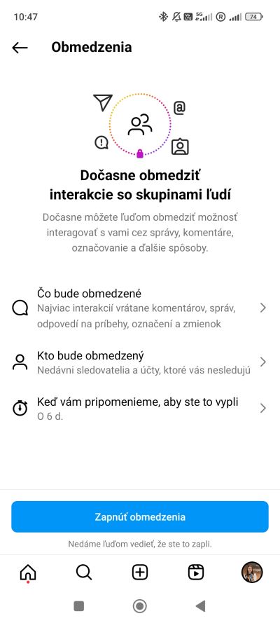 Aby ste však nezabudli na to, že ste interakcie vo vašom účte obmedzili, Instagram vás na to upozorní. Deaktiváciu tejto funkcie je potrebné vykonať manuálne, nedá sa teda vypnúť automaticky po nejakom čase. Sociálna sieť od Mety vám však dá možnosť výberu času, po ktorom vás automaticky upozorní, aby ste si interakcie opäť aktivovali.