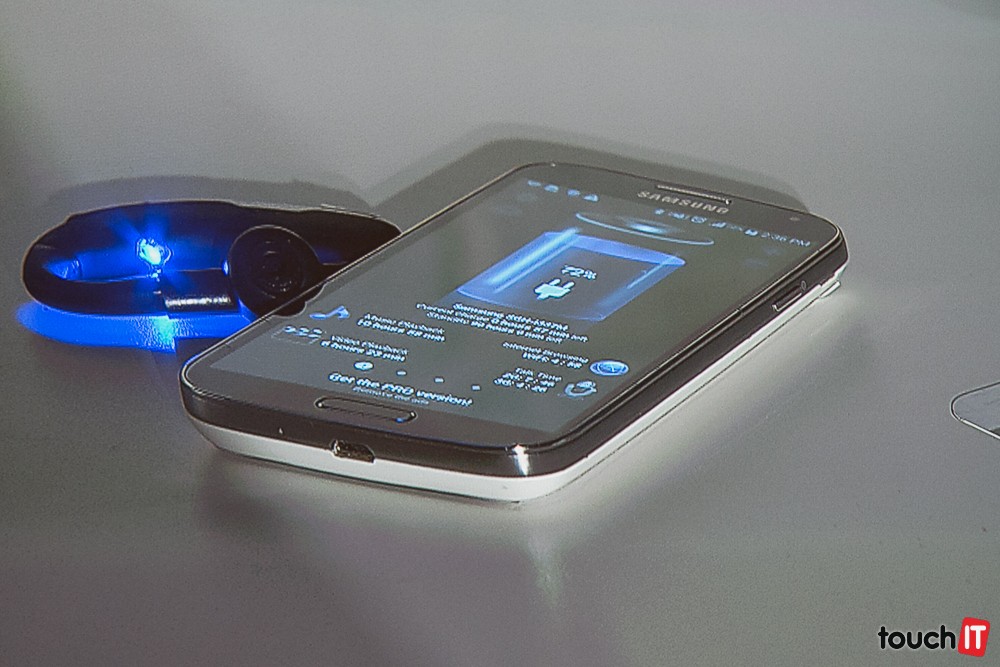 Takto sa nabíja smartfón, ktorý je ale vybavený špeciálnym zadným krytom. Samsung Galaxy S6 so zabudovaným adaptérom pre bezdrôtové napájanie pritom podporuje štandard QiAdaptér pre bezdrôtové napájanie môže byť umiestnený aj pod hrubou doskou stola a je ľahko prenosný