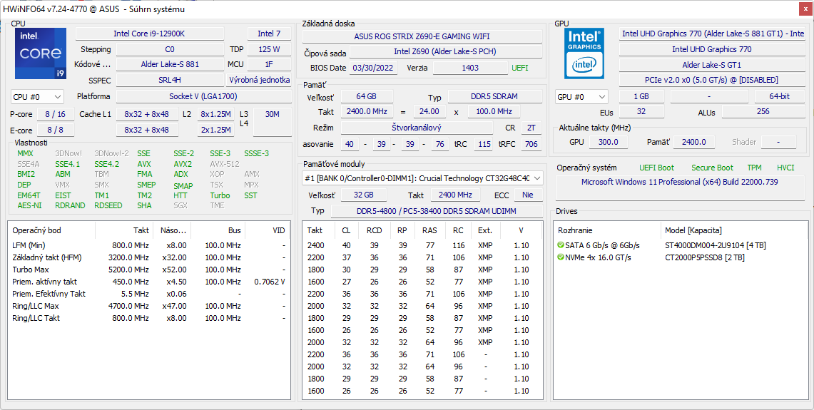 Testy sme realizovali na zostave so základnou doskou ASUS ROG STRIX Z690-E GAMING WIFI a čipovej súprave Intel Z690 (Alder Lake-S PCH). Po niektorých testoch sme inštalovali grafickú kartu NVIDIA RTX 3080 zo série ASUS STRIX.