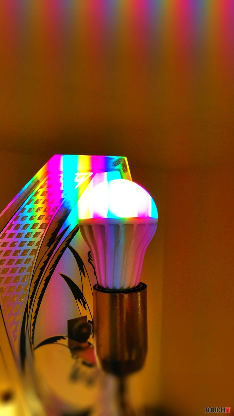 LED žiarovka obsahuje čipy troch farieb (RGB), ktorými sa dá v aplikácii „namiešať“ akákoľvek požadovaná farba v rôznych teplotách. Má vstavaný prijímač/stmievač, čím sa dá v bežnej lampe alebo lustri vymeniť za klasickú žiarovku s veľkou päticou (E27). Funkcie žiarovky sú: farebné scény, nastavenie jasu, prelínanie všetkých farieb (režim cirkus). Udávaná životnosť žiarovky je 30 000 hodín.