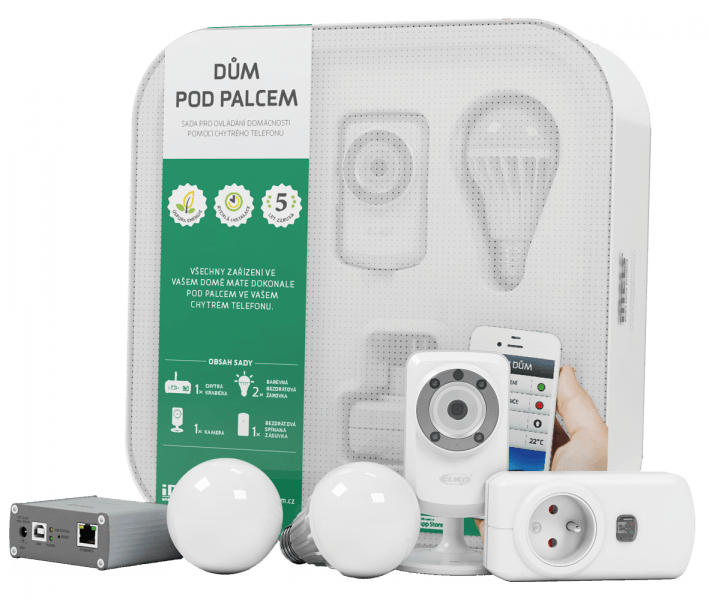 Základná súprava „dom pod palcom“ ponúka 4 inteligentné prvky, riadiacu jednotku a Wi-Fi router.