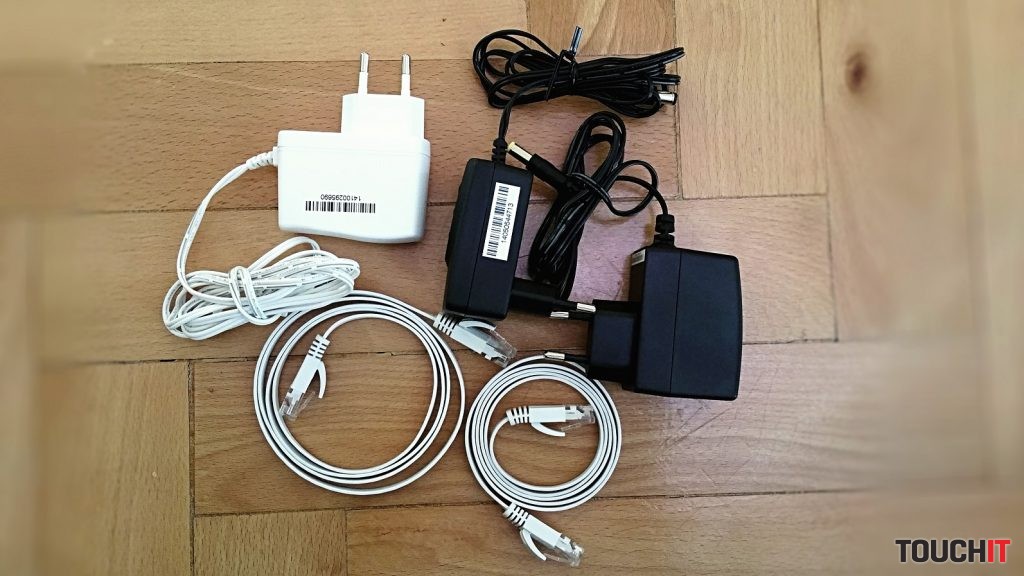 Samozrejmosťou, všetkých prvkov a zariadení v zostave, sú napájacie adaptéry a potrebné sieťové káble.