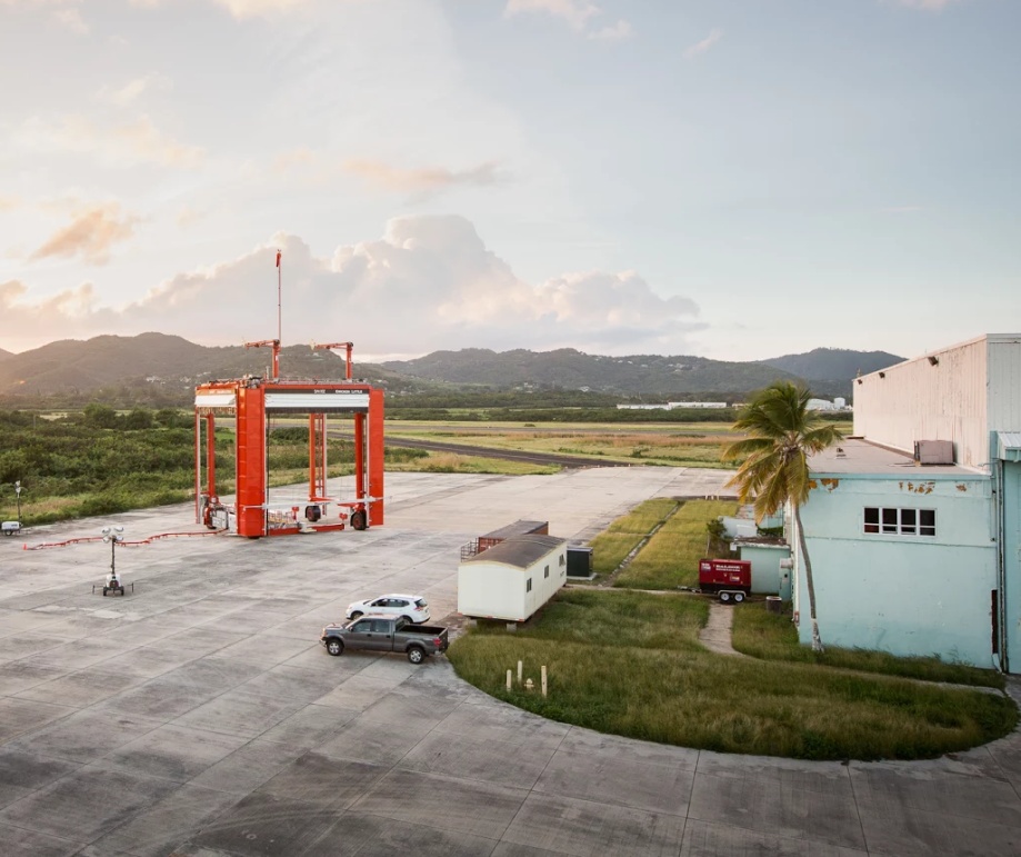 Na obrázku môžete vidieť, ako po troch stranách umožňuje spustenie veternej clony, tvorenej materiálom pre dvere hangárov. Keďže platforma sa dá otáčať, je možné pri procese vypúšťania vždy nakloniť konštrukciu tak, aby bol balón v závetrí. Nedôjde tak k náhlemu pohybu, ktorý by mohol spôsobiť roztrhanie plášťa, alebo poškodenie elektroniky nárazom o iné vybavenie.