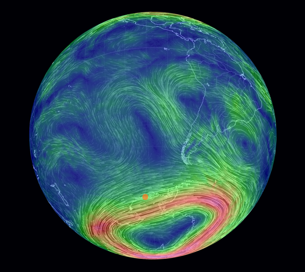 Balóny sa následne vydali na cestu okolo sveta, čo vzhľadom na pozíciu Nového Zélandu znamená zhruba 1000 km dlhú púť (cca 40-krát menej ako na rovníku). Šlo o okruh okolo Antarktídy, pri ktorom balóny lietali nad Južným oceánom tesne pod Austráliou a Novým Zélandom, pretínajúc južný cíp Južnej Ameriky.