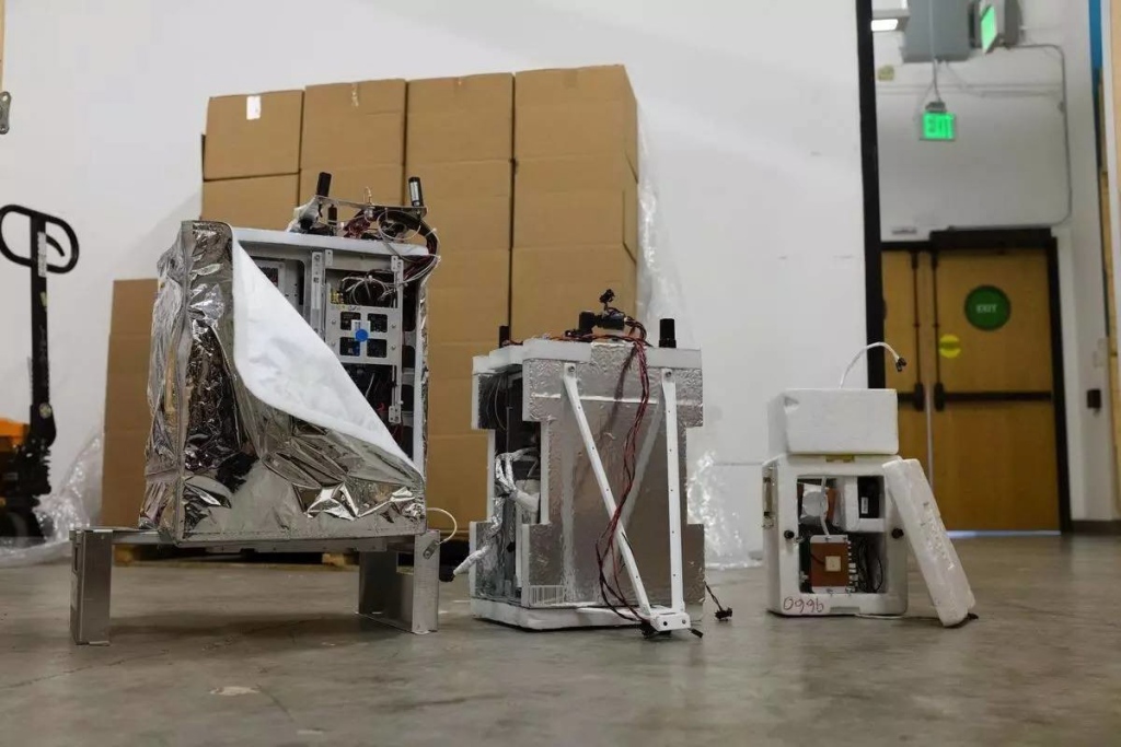 Vývoj elektroniky balóna a jej izolácie. Vpravo malá jednotka pre Ibis, v strede pre Lark a naľavo najväčšia pre súčasný Nighthawk