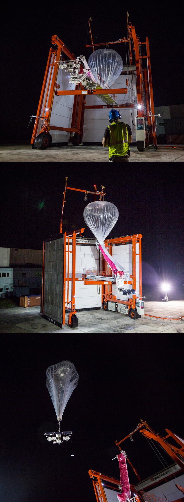 Pri procese vypúšťania sa do konštrukcie osadí škatuľa so zabaleným balónom z výroby, pričom stredné rameno balón pomaly vyťahuje a nafukuje. Elektronika vysielača a solárny panel sú zároveň rýchlo pripravené na kontrolu a keď je všetko nachystané, spodné rameno elektroniku mierne postrčí do strany, ako akýsi spomalený prak, čím sa balón uvoľní a vyštartuje. Kým v minulosti balón vypúšťalo až 16 ľudí, dnes na to stačia štyria, pričom každá jedna platforma zvládne vypustiť desiatky balónov denne.